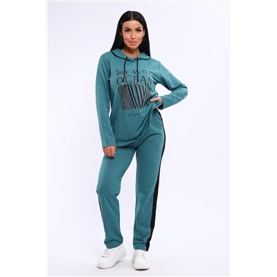 Мягкий и уютный женский костюм для дома, изготовленный из высококачественного, приятного телу трикотажного полотна, состоящего на 50% из хлопка. Комплект представлен в трех расцветках. На полочке кофты имеется принт, придающий изделию особый шарм. Дополнительным декором кофты служит капюшон. По бокам брюк расположены лампасы из ткани контрастного цвета. Костюм красиво сидит на фигуре, подчеркивает ее достоинства и при этом не стесняет движений. В нем Вы будете чувствовать себя комфортно и уверенно.