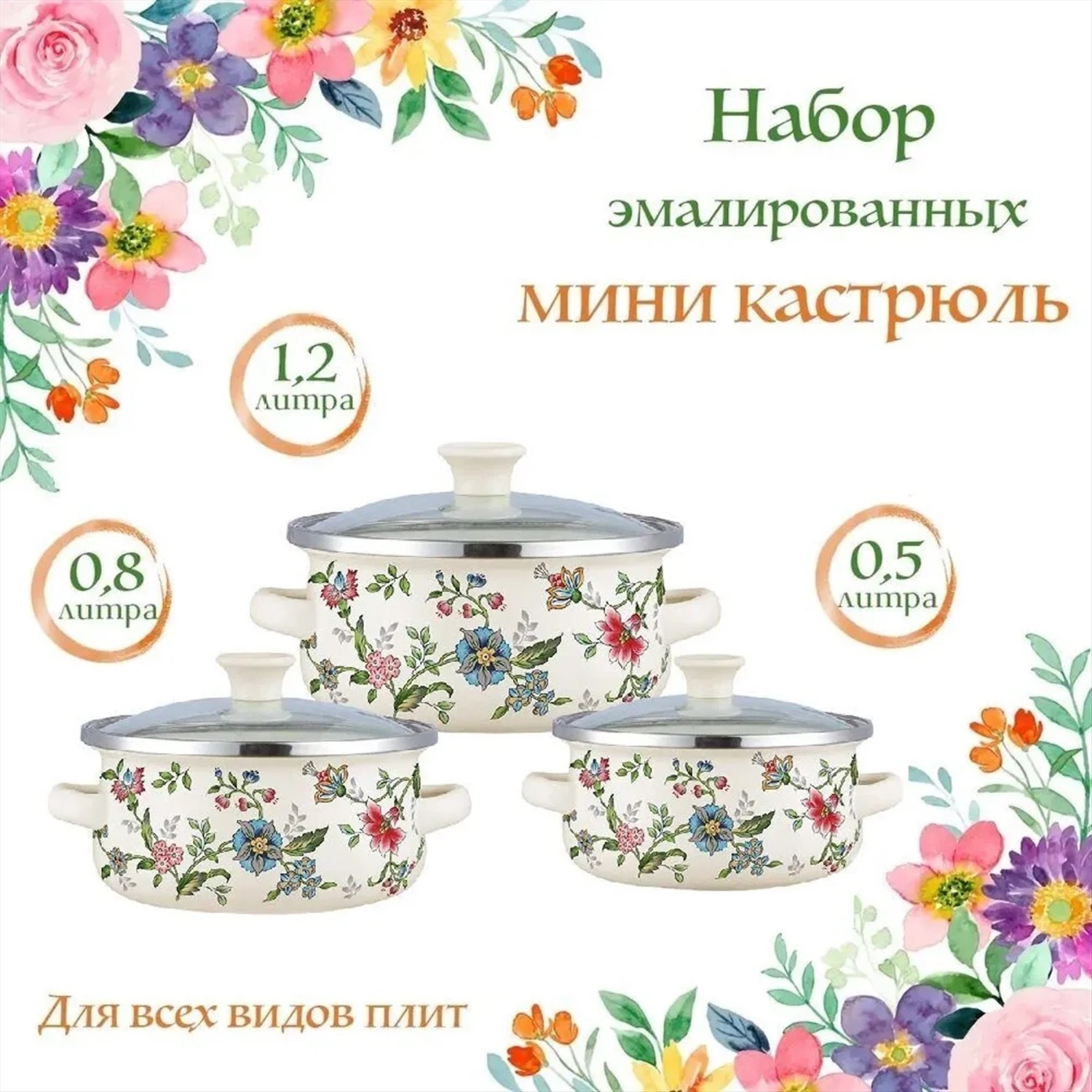 Производитель: ZEIDAN; Артикул поставщика: Z-80634; Год: 2025; Высота упаковки, см: 14,5; Ширина упаковки, см: 16,5; Длина упаковки, см: 16,5 Набор мини-кастрюль, 6 предм. (3 КАСТРЮЛИ С КРЫШКАМИ: 0,5 Л (d12 см), 0.8 Л (d14 см), 1,2 Л (d16 см) с внутренним эмалированным покрытием), эмалированная сталь, внешнее покрытие - эмаль с рисунком. Подходит для индукции. Подарочная упаковка.