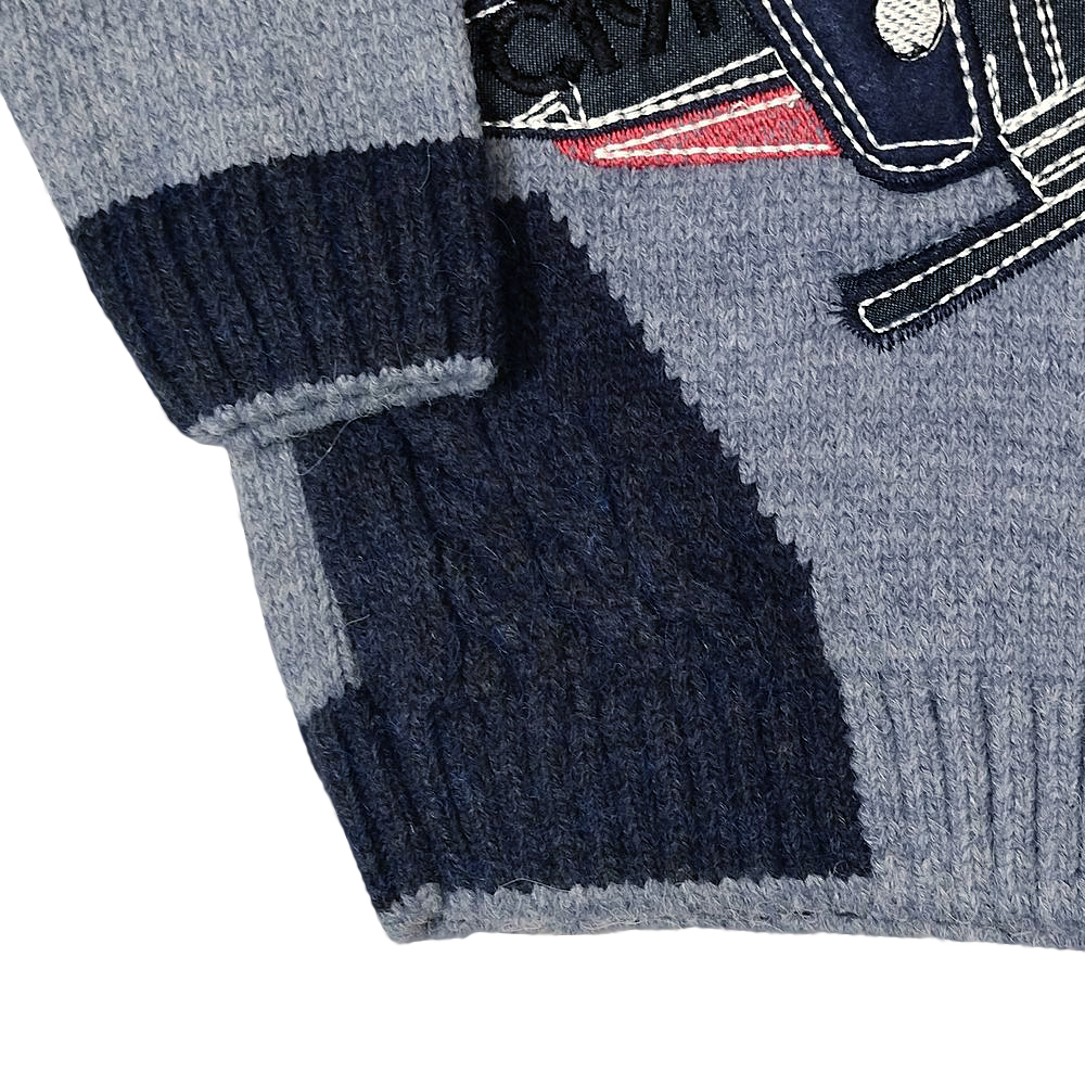Доп. параметр: Длинный рукав, Утепленный Страна: Турция Состав: 82% акрил, 10% полиэстер, 8% эластан Материал: Вязаный трикотаж Описание и замерыДжемпер, вязаный из акрила и полиэстера, с красочным принтом "вертолет" из фетра и ткани. Горловина, рукав, низ джемпера на манжетах, вязаных резинкой.Размер 86: длина 37 см, обхват груди 53 см, длина рукава 28 см. Размер 92: длина 40 см, обхват груди 58 см, длина рукава 30 см. Размер 98: длина 43 см, обхват груди 60 см, длина рукава 32 см. Замеры выборочные, могут незначительно отличаться. Комментарии к товару