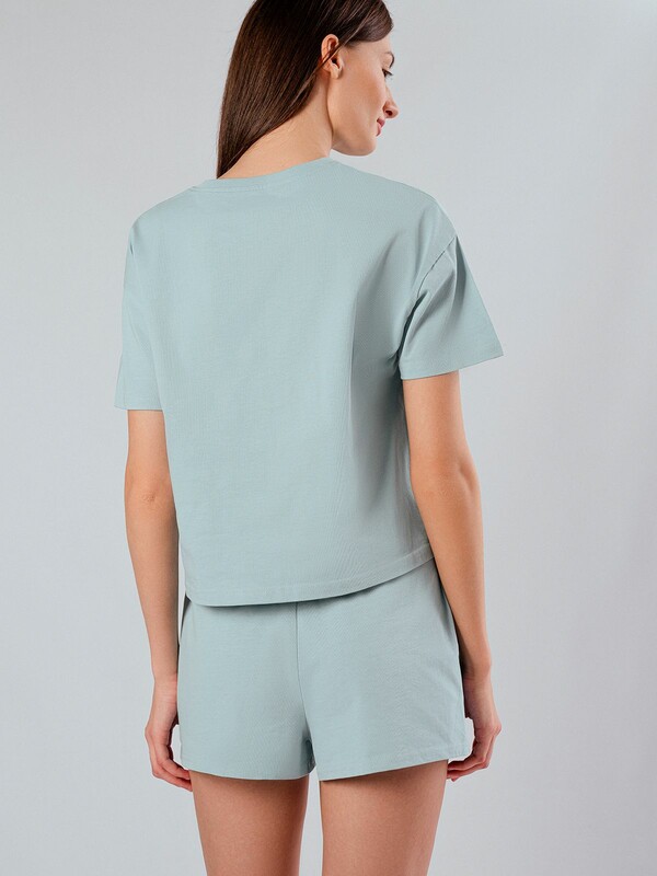 Стильная домашняя одежда от торговой марки Индефини в виде футболка с шортами, самая популярная, можно носить в любое время года. Такой вид одежды подарит комфорт и уют дома.