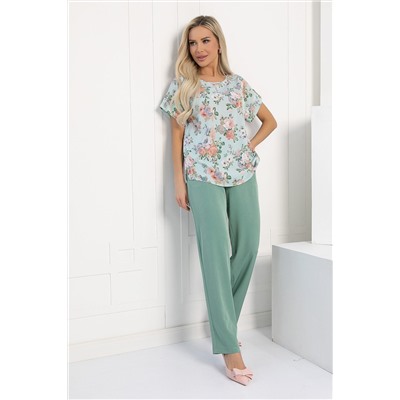 Принт: блузка - цветочный, брюки - однотонные.