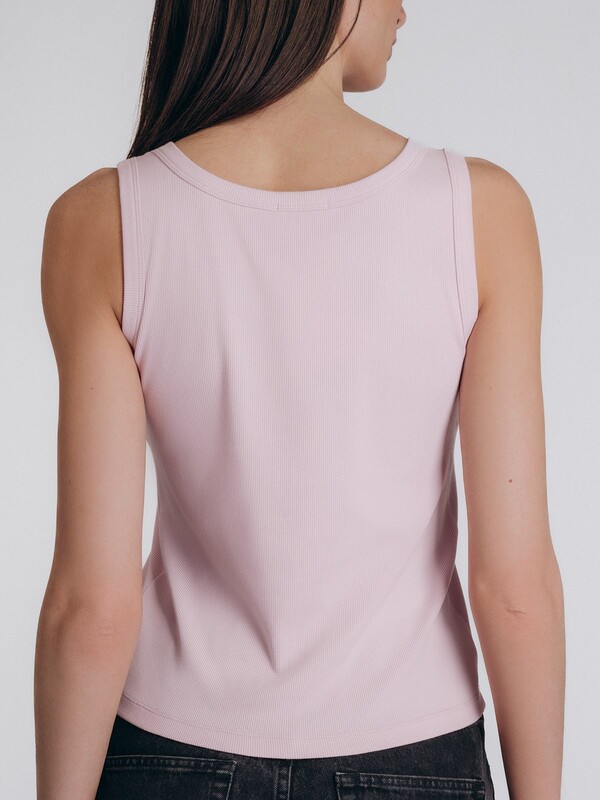 Классическая майка из комбинированного материала (хлопок/вискоза) с мелким рубчиком. Нежно-розовый оттенок создает сдержанный и элегантный образ. Универсальная модель стандартного кроя подходит для повседневной носки и комбинирования с различными элементами гардероба.