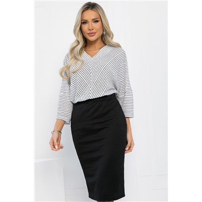 Костюм, состоящий из однотонной черной юбки и белой блузки в полоску, станет вашим незаменимым спутником в создании повседневных образов! Он выглядит стильно и современно, позволяя вам подчеркнуть свою индивидуальность. Этот комплект можно носить как вместе, так и по отдельности.