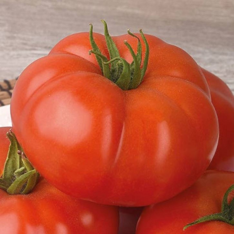 Высокоурожайный. Крупноплодный. Отличный вкус. Ярко-красные плоды отличного вкуса. Индетерминантный среднеспелый гибрид для выращивания в защищенном грунте. Период от всходов до начала созревания 110-115 дней. Растение высокорослое, требует подвязки и формирования в 1-2 стебля. В кисти 4-5 плодов. Плоды плоскоокруглые, выравненные по размеру и форме, плотные, гладкие, ярко-красной окраски, массой 280-300 г, мясистые, с нежной, сочной мякотью насыщенного вкуса. Один из лучших салатных гибридов, подходит для получения томатного сока и переработки на томатопродукты.