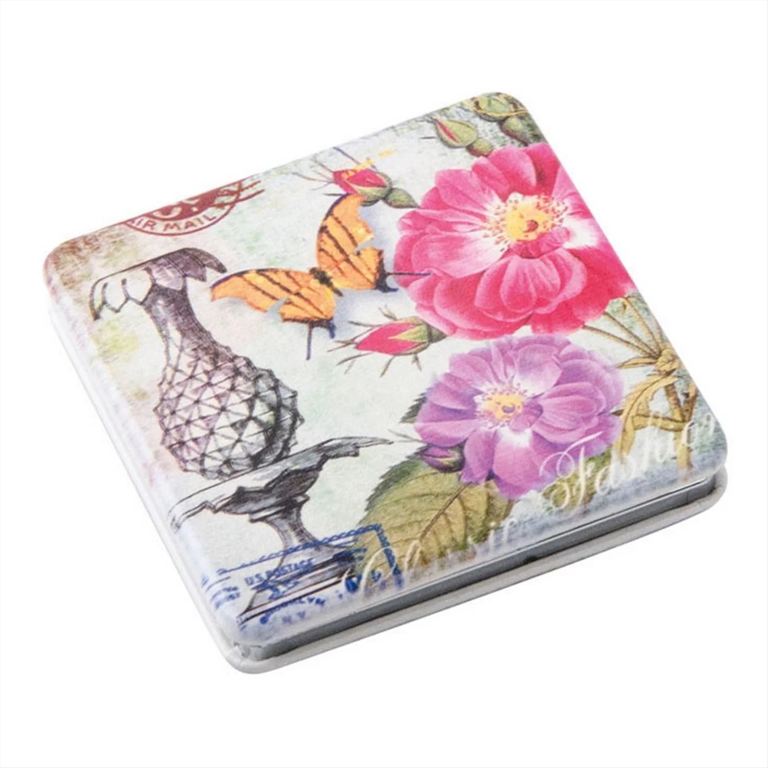 Квадратная форма изделия позволяет его удобно размещать на горизонтальной поверхности, чтобы освободить руки во время нанесения макияжа, а благодаря компактному размеру – 60 х 60 х 0,9 мм, зеркало можно хранить как в сумочке, так и в кармане одежды.