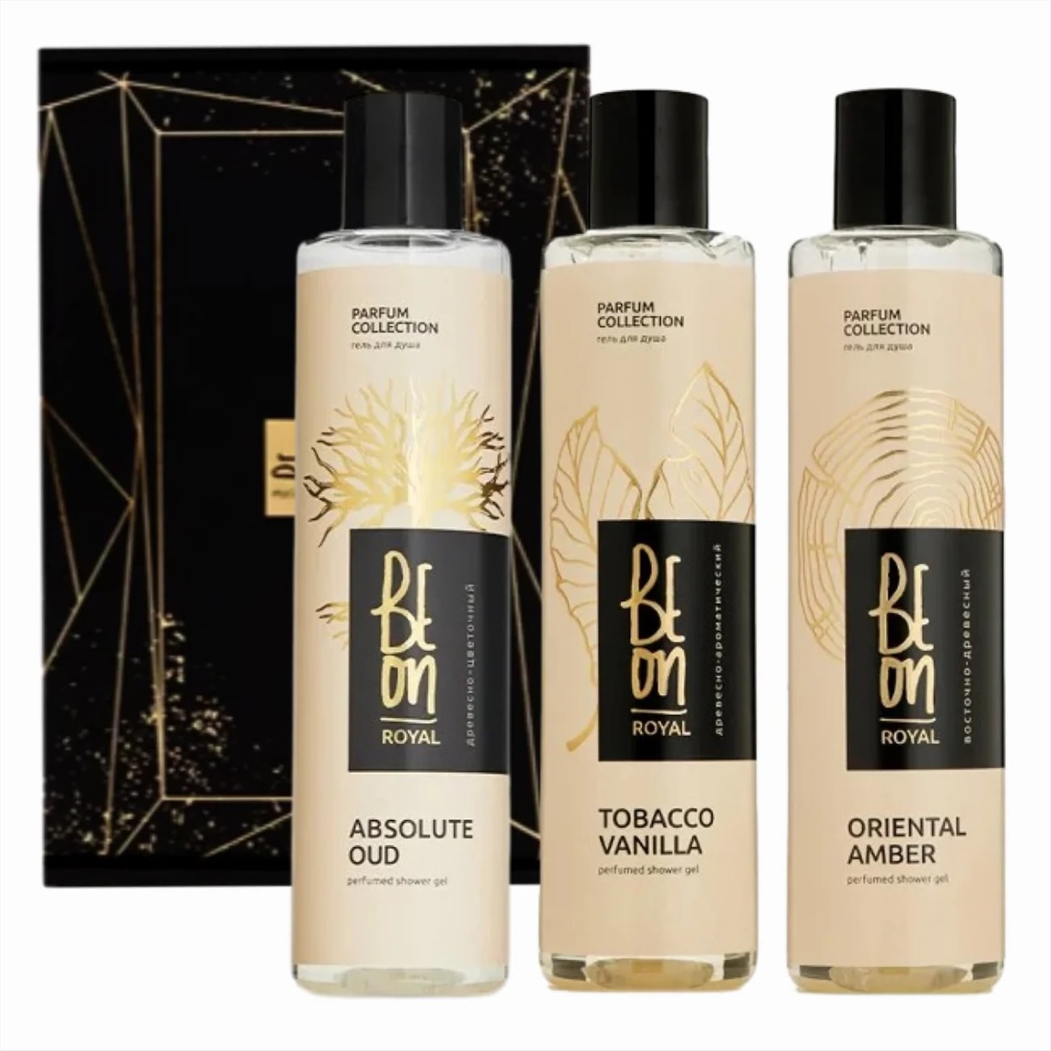 BEON ROYAL - это эксклюзивный уход и благородные ароматы нишевой парфюмерии. Подарочный набор натуральной косметики включает в себя 3 парфюмированных геля для душа Beon Royal.