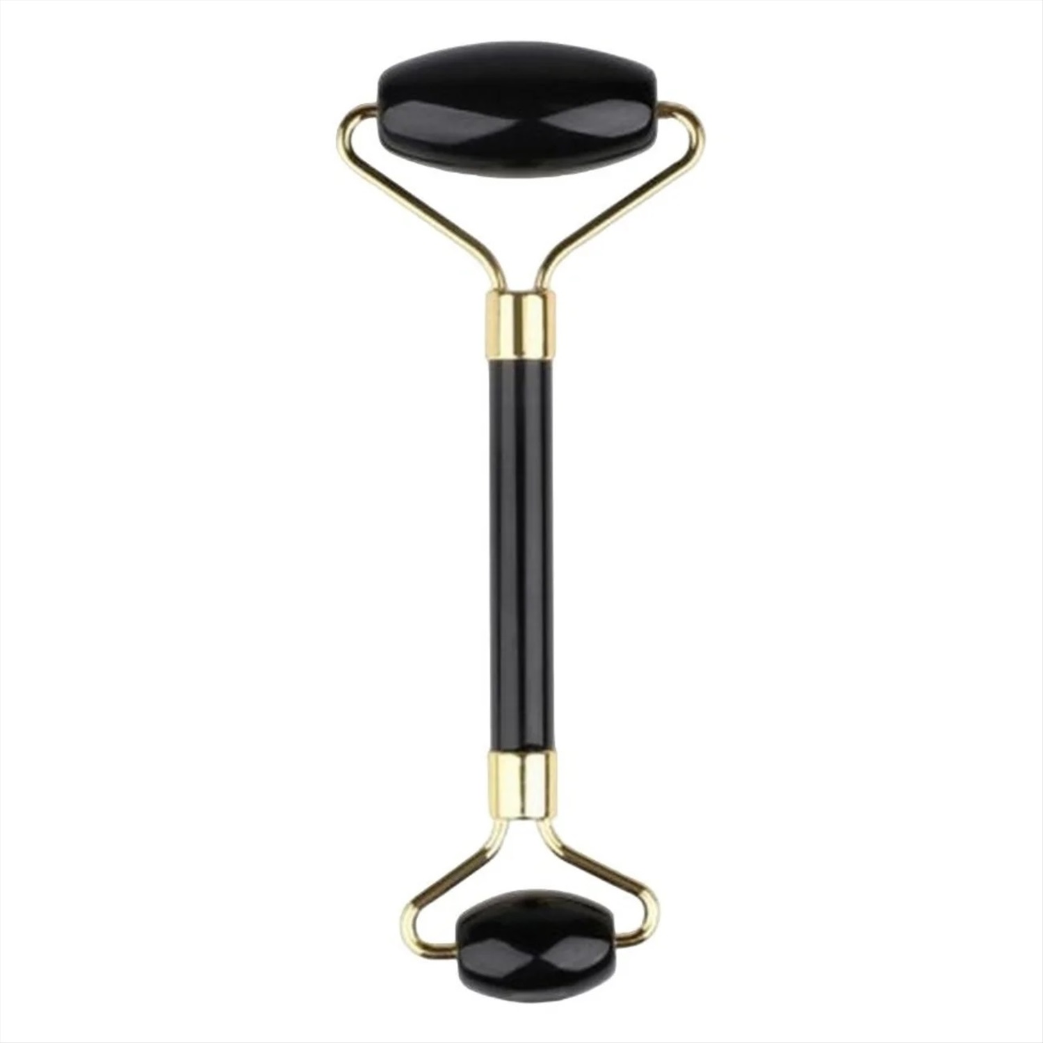 Массажёр для лица из чёрного обсидиана с двумя роликами разного размера