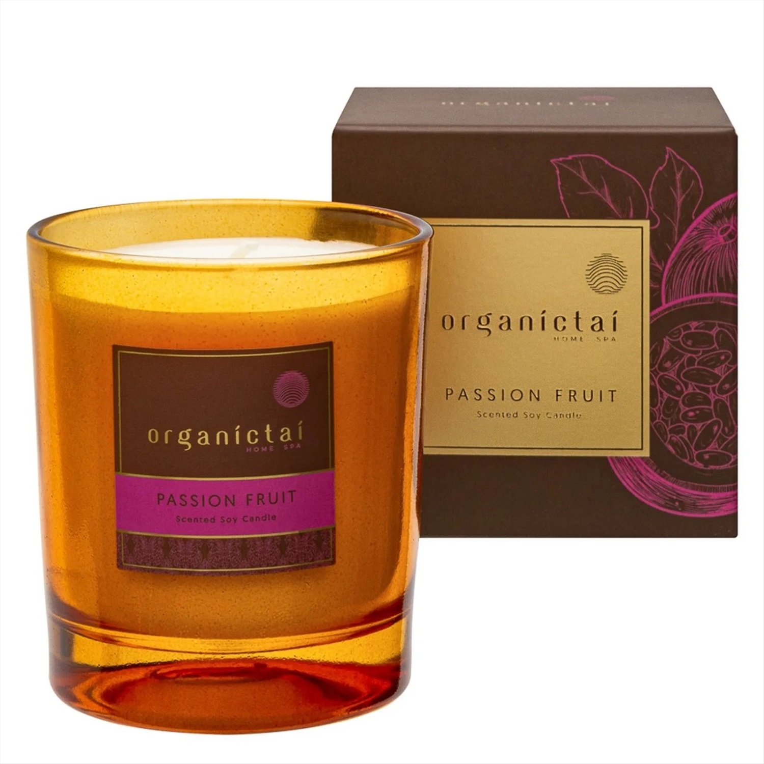 Ароматическая свеча изготовлена из натурального соевого воска и хлопкового фитиля. Соевая аромасвеча не содержит парафин, не выделяет опасных канцерогенов при горении. Ароматическая соевая свеча быстро наполняет помещение сочным, свежим ароматом экзотической маракуйи. В нем сплелось множество фруктовых оттенков – ананаса, мандарина, груши. Аромасвеча Маракуйя с необычайно приятным фруктовым оттенком. Ароматическая соевая свеча для дома и массажа дарит тёплый, солнечный, тропический интерьерный аромат. Свеча создает прекрасное настроение и ощущение релакса. Аромасвечи Organic Tai подходят для массажа, т.к. изготовлены из 100% соевого воска. Из-за низкой температуры плавления, растопленный воск можно использовать для массажа. Сначала необходимо наносить на ладонь, а затем на тело без опасений получить ожог. Во избежание аллергических реакций на аромамасло рекомендуется предварительно протестировать на запястье. Ароматическая свеча в стеклянном стакане янтарного цвета украсит любой интерьер. Горит до 48 часов. Соевая аромасвеча из Таиланда - это важный элемент СПА процедуры у вас дома, это уютный вечер, это лучший помощник в борьбе с плохим настроением и хандрой, а также беспроигрышный и эффектный подарок на любой праздник.