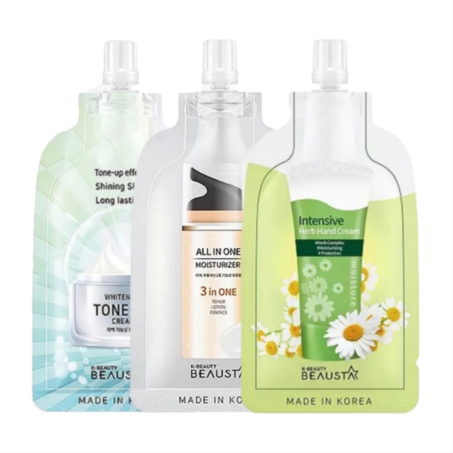 Beausta Whitening Tone-Up Cream:Water, Glycerin, Dipropylene Glycol, Cyclopentasiloxane, PEG/PPG-17/6 Copolymer, Titanium Dioxide, Bis-PEG-18 Methyl Ether Dimethyl Silane, Niacinamide, Cyclohexasiloxane, Sodium Acrylate/Sodium Acryloyldimethyl Taurate Copolymer, Dimethicone/Vinyl Dimethicone Crosspolymer, 1,2-Hexanediol, Hydroxyethyl Acrylate/Sodium Acryloyldimethyl Taurate Copolymer, Dimethicone, Isohexadecane, Sodium Polyacrylate, Polysorbate 80, Hydroxyacetophenone, Caprylyl Glycol, Aluminum Hydroxide, Ethylhexylglycerin, Triethoxycaprylylsilane, Dimethiconol, Fragrance, Disodium EDTA, Tripropylene Glycol, Panthenol, Butylene Glycol,Prunus Serrulata Flower Extract, Propylene Glycol, Xylitylglucoside, Anhydroxylitol, Paeonia Albiflora Flower Extract,Magnolia Liliflora Bud Extract, Lilium Candidum Flower Extract, Xylitol, Glucose.