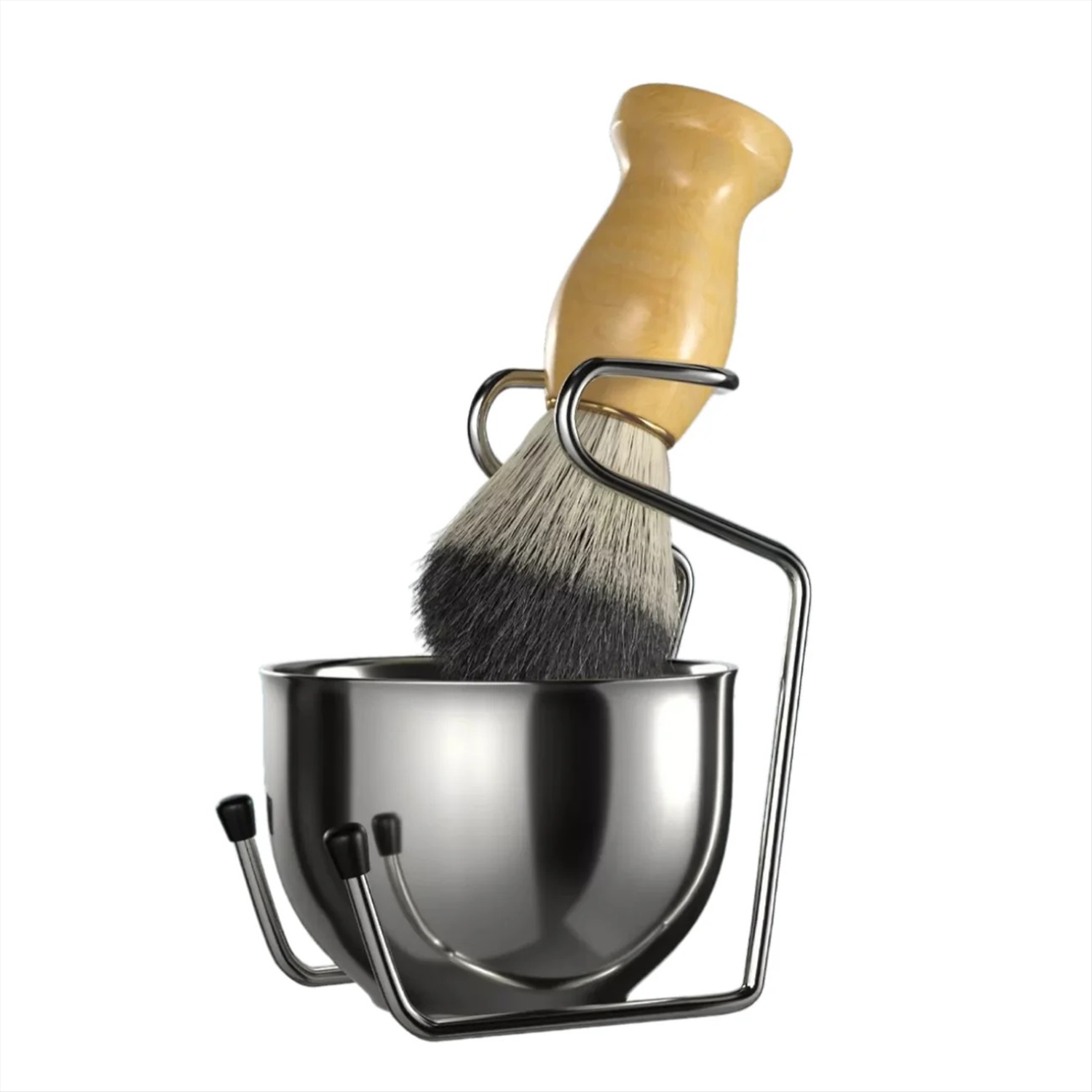 Чаша для бритья выполнена из нержавеющей стали, а надежная фиксация и устойчивая конструкция обеспечивают легкость и удобство в процессе приготовления пены. В этой чаше легко взбивать пену необходимой консистенции, контролируя соотношение мыла и воды. После нанесения пены, нужно установить помазок на подставку и можно приступать к бритью.
