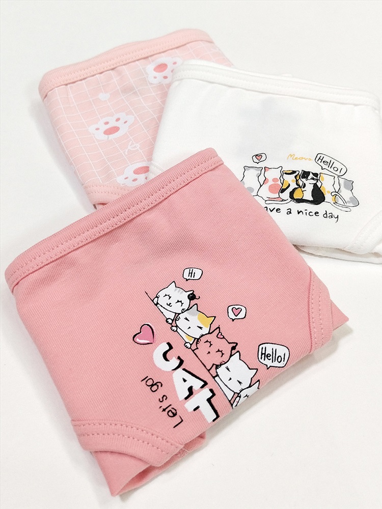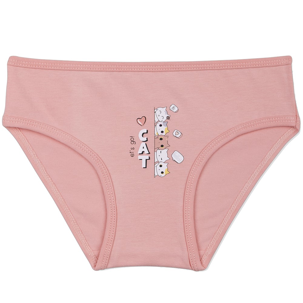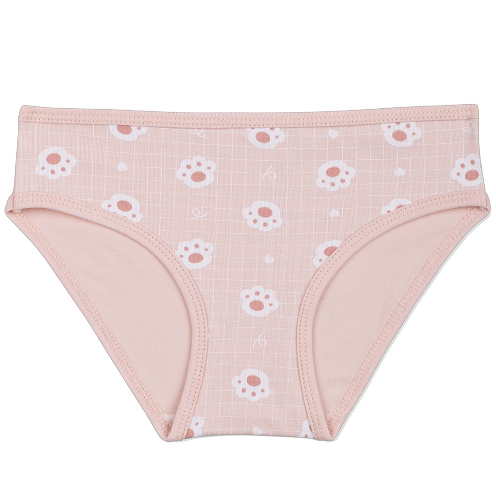 Трусы-слипы для девочки. Выполнены из эластичного х/б трикотажа кулирное полотно. Декорированы принтом "котики; кошачьи лапки". В поясе и проймах отделаны эластичным трикотажным кантом. Ластовица из хлопка.