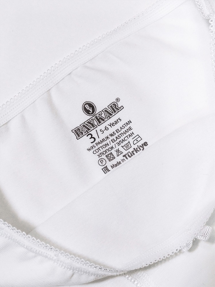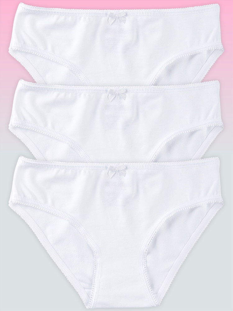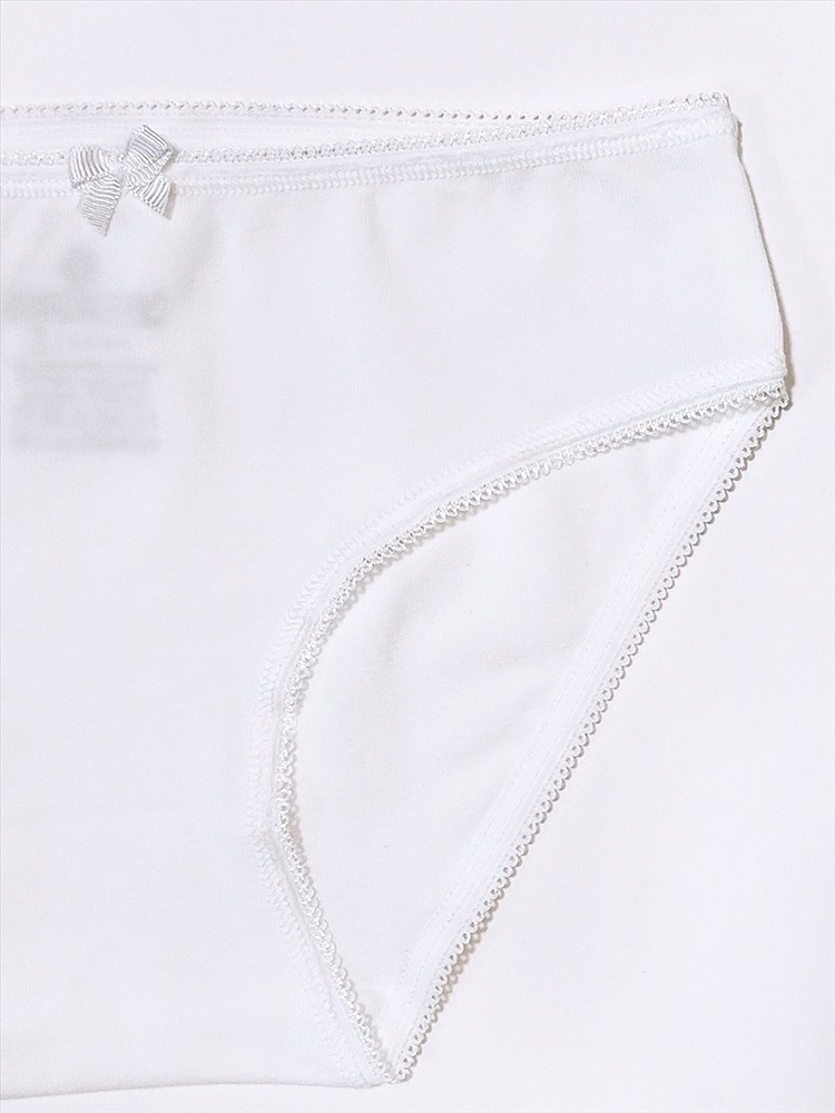 Трусики для девочки из эластичного х/б трикотажа. В поясе и проймах на тонкой резинке с фистончатым краем. Украшены бантиком из тесьмы.