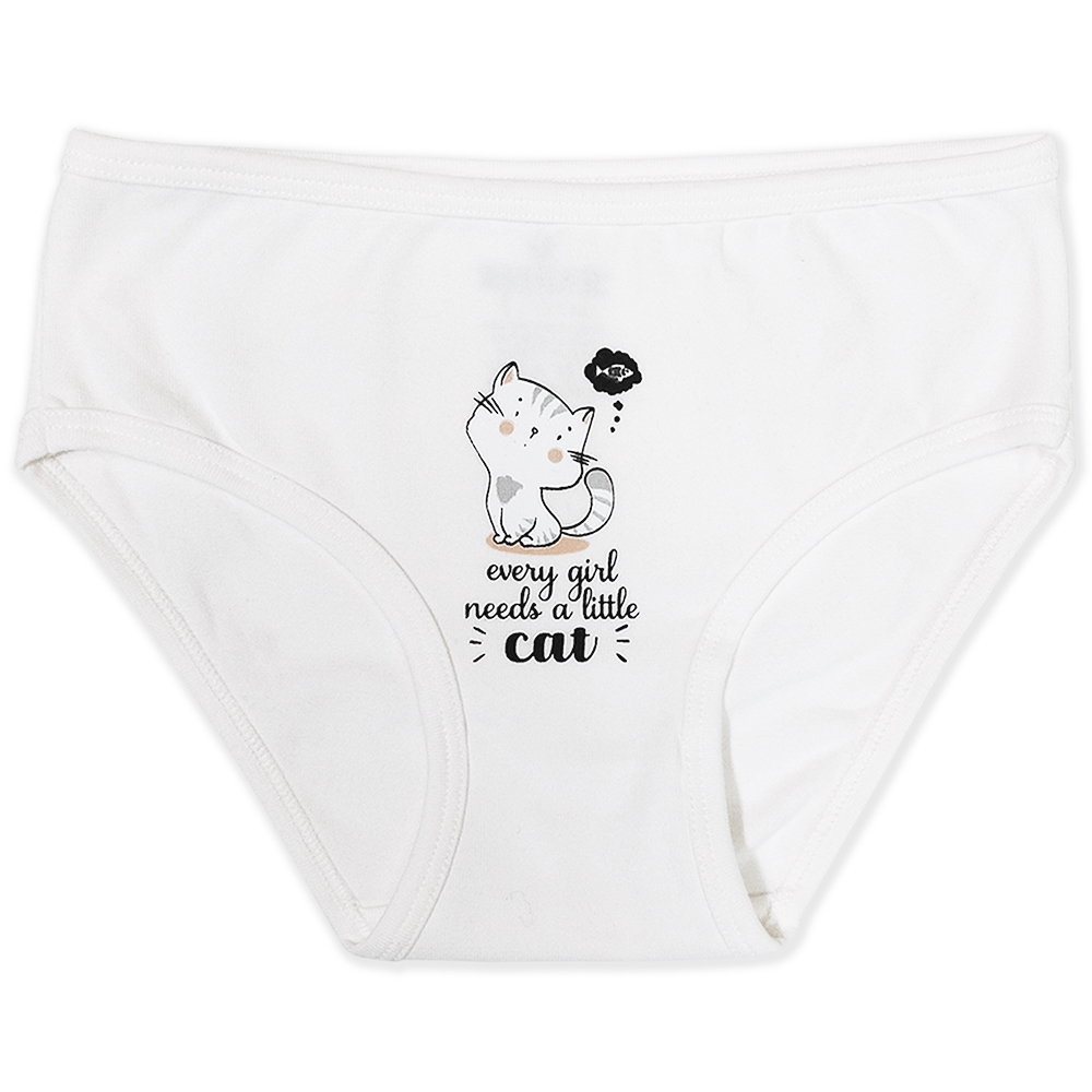 Трусы-слипы для девочки. Выполнены из эластичного х/б трикотажа кулирное полотно. Декорированы принтом "Милый котенок". В проймах на эластичном трикотажном канте. Ластовица из хлопка.