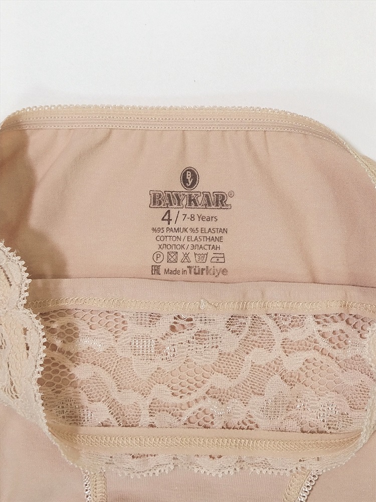 Доп. параметр: Модель- слипы, Однотонный Страна: Турция Состав: хлопок 95%; эластан 5% Материал: Кулирка (трикотажное полотно) Кол. штук: упак. Описание и замерыТрусики для девочки, бежевого цвета, из эластичного х/б трикотажа, с эластичной, кружевной вставкой спереди. На мягкой, тонкой, открытой резинке на поясе. Украшены атласным бантиком.Комментарии к товару