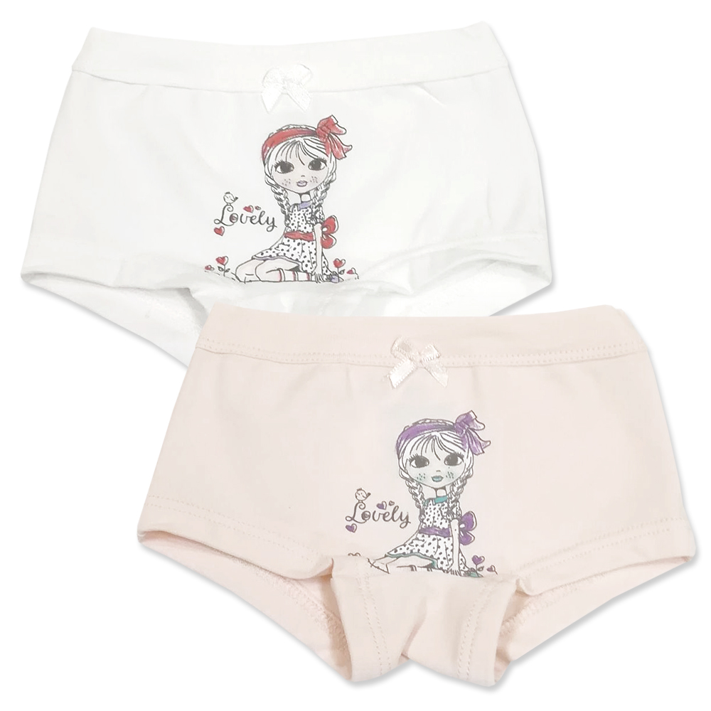 Трусики-шортики для девочки, из эластичного, х/б трикотажа, с красочным принтом "любимая девочка". В поясе, спереди, на трикотажном поясе, сзади - на мягкой, открытой резинке. Проймы с подворотом. Украшены атласным бантиком.