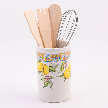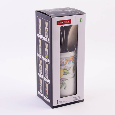 Подставка с кухонными приборами LORAINE позволит комфортно и красиво хранить приборы на кухне. В наборе 5 предметов: подставка из доломита, деревянная ложка, деревянная вилка, деревянная лопатка и металлический венчик. Кухонный инвентарь выполнен из дерева, которое идеально подходит для приготовления пищи. Кухонный набор комплектуется подставкой в форме стакана, которая изготовлена из качественной БИО и ЭКО доломитовой керамики и украшена красивым цветочным рисунком. Благодаря своей компактной конструкции, подставка с набором кухонных принадлежностей не только сэкономит место и сохранит порядок на вашей кухне, но и добавит уют и стильность в ваш интерьер. Подставку и венчик можно мыть в посудомоечной машине. Изделие упаковано в индивидуальную коробку. Оригинальный дизайн и красивое оформление позволит сделать набор отличным подарком на любой праздник на 8 Марта, День рождения, 14 февраля, Новый год и любой праздник.