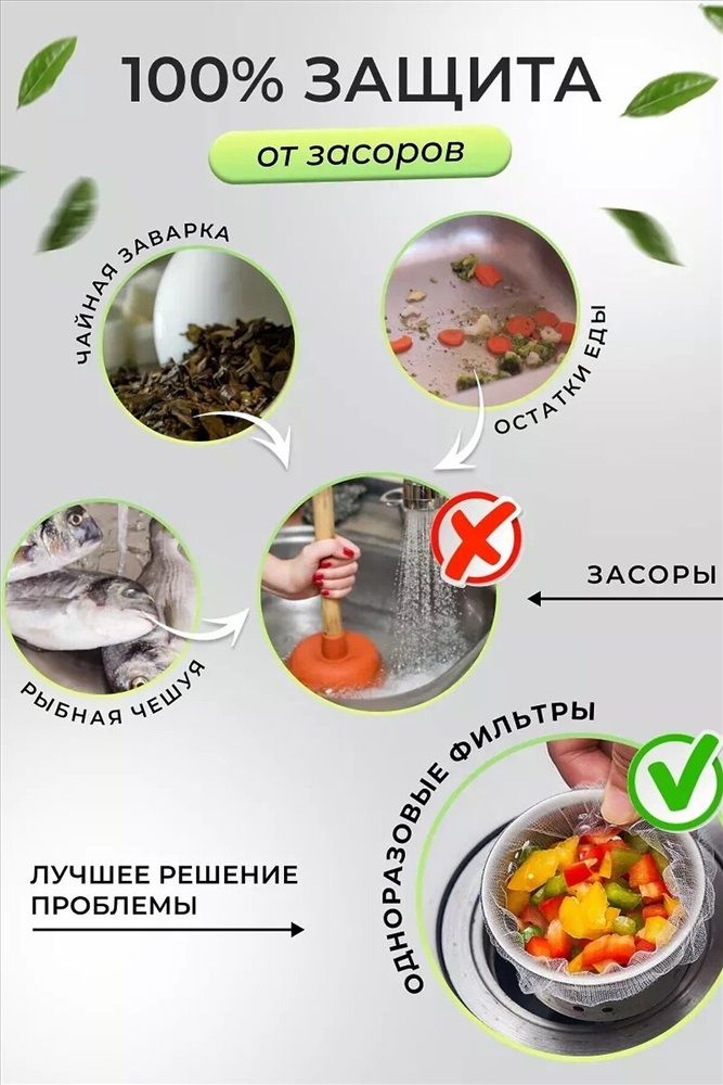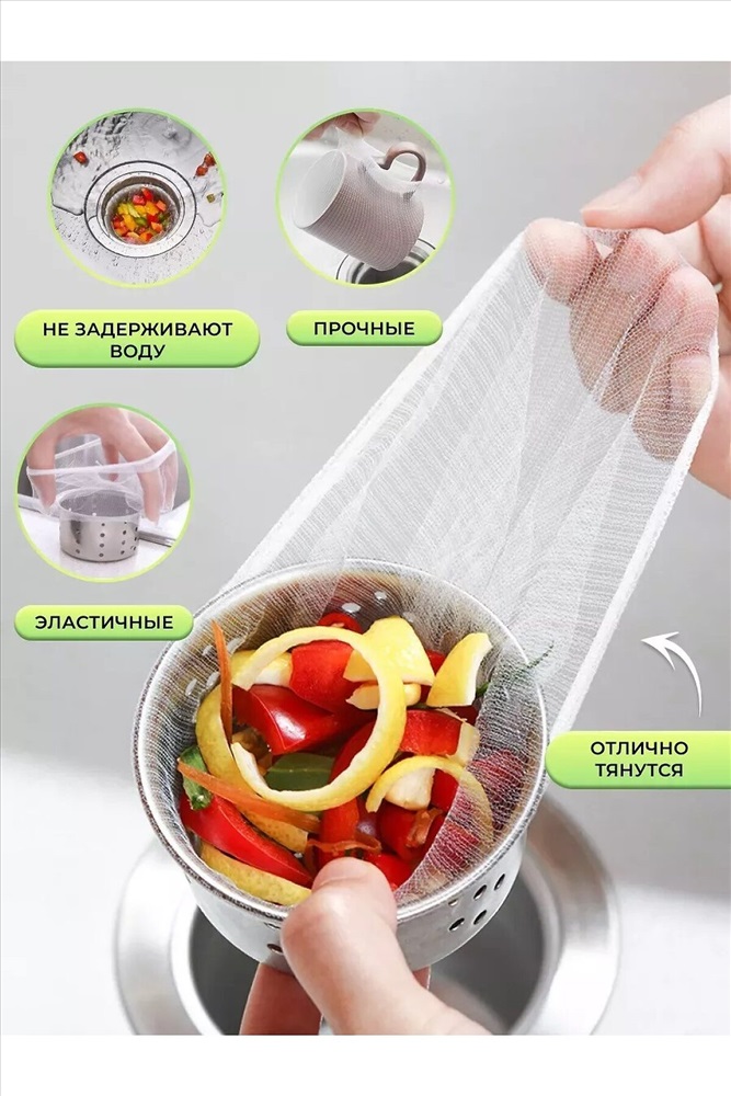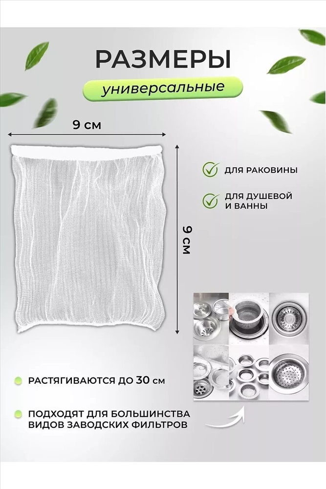 Набор одноразовых фильтров от засоров в раковину 100 штук. Универсальная сетка фильтр на слив в раковину является удобным и эффективным способом предотвратить засорение раковины ванной комнаты или кухни. Она улавливает мелкие частицы и отходы, такие как волосы, пищевые остатки и другие загрязнения \ отходы, которые могут попасть в мойку при использовании. После установки, сеточка фильтр начинает свою работу, задерживая загрязнения и предотвращая их попадание в трубы. Ситечко подходит под мусор в раковине. Продлевает срок использования сантехники. Сетка фильтр на раковину, в ванну или душ является эффективным способом поддержания чистоты и предотвращения засоров в ваших трубах. Она также может быть использована как дополнительная защита для сливающихся предметов, таких как кольца или серьги, чтобы они не попали в трубы и не были потеряны. Использование сетки фильтра на раковину является простым и эффективным способом поддержания чистоты и предотвращения засоров в ваших трубах. Кухонный сетчатый чехол для слива\ сливной. Круглый фильтр для воды. Улавливатель волос. Удобная сантехника для ванной и кухни под раковину.