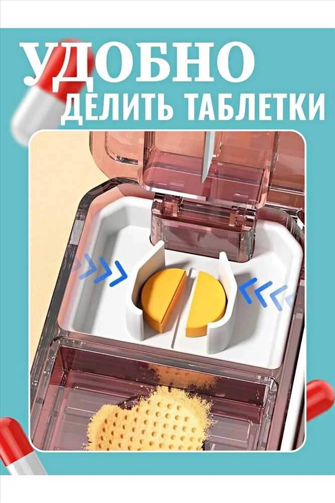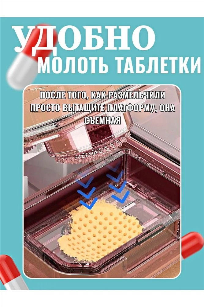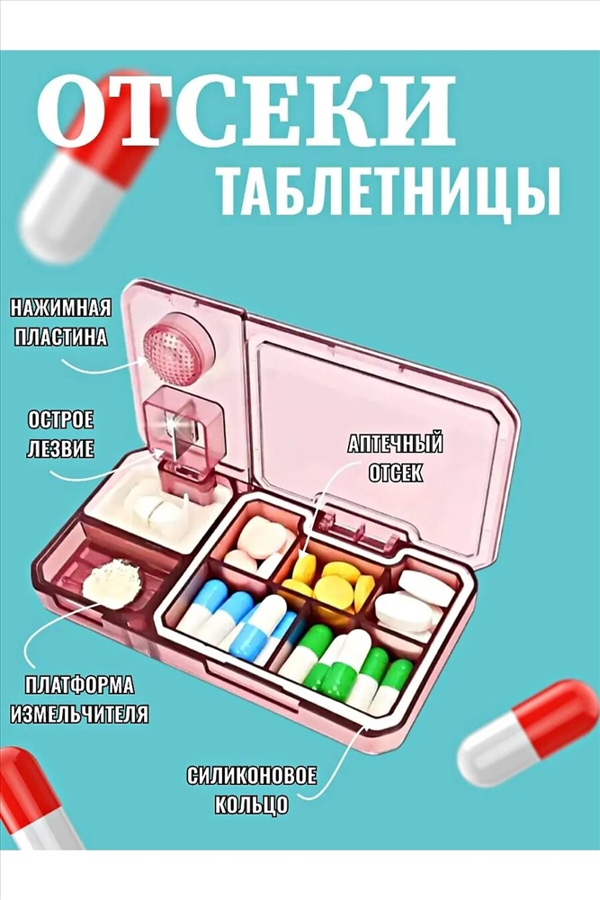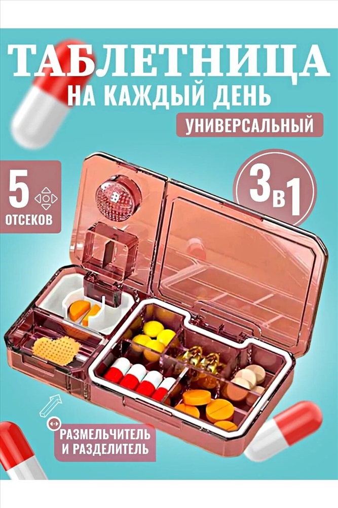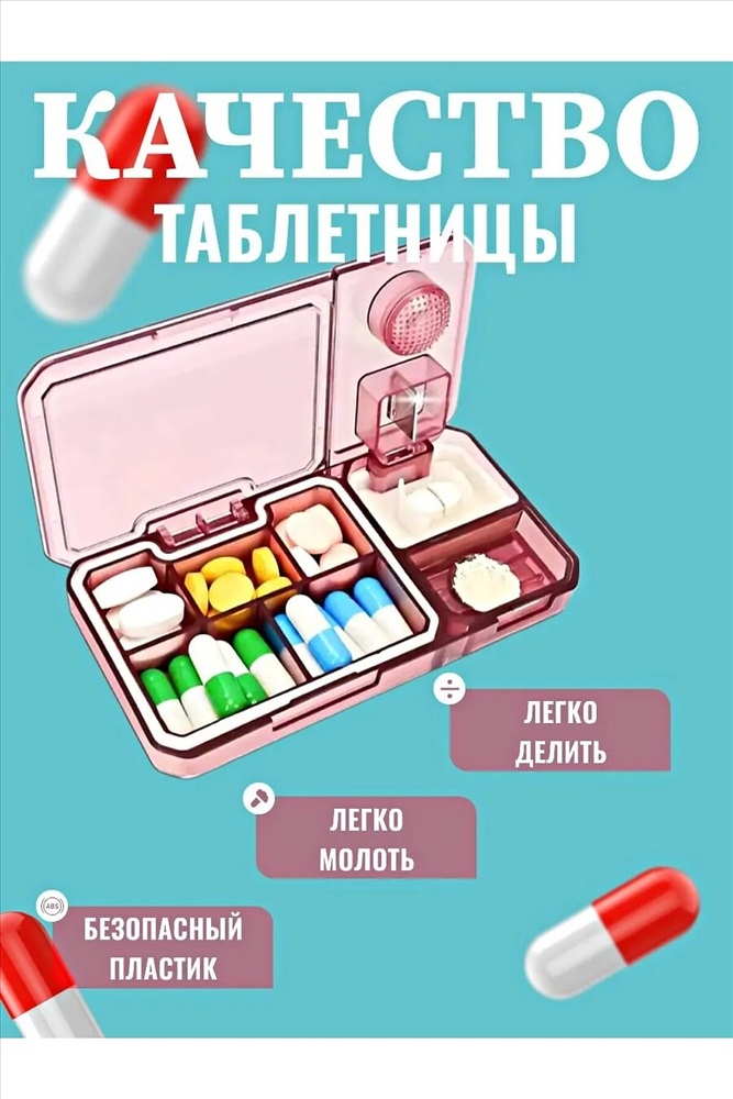 Сезон: Демисезон Таблетница с делителем и измельчителем из пластика - это удобное и многофункциональное устройство, предназначенное для хранения и измельчения таблеток или капсул. Она способна значительно облегчить процесс приема лекарств, особенно для людей с ограниченными возможностями или тех, у кого есть проблемы с глотанием целых таблеток. Основные характеристики таблетницы включают: 1.Делитель для таблеток: Устройство оснащено делителем, позволяющим разделить таблетку или капсулу на две или более части. Это особенно удобно для пациентов, которым необходима точная дозировка лекарств. 2.Измельчитель: Таблетница также оснащена измельчителем, который позволяет превратить твердые лекарственные формы в порошок. Это полезно для людей, которым сложно проглотить большие таблетки. 3.Отсеки: Таблетница имеет 5 отсеков для хранения таблеток или капсул на разные временные промежутки. Это помогает пациентам организовать прием лекарств на протяжении дня. 4.Прочный и легкий пластик: Материал изготовления- высококачественный пластик, стойкий к воздействию влаги и прочный, обеспечивающий долговечность и надежность устройства. 5.Привлекательный стильный и компактный дизайн. Таблетница с делителем и измельчителем является универсальным и удобным инструментом для контроля приема лекарств и обеспечения комфортного и безопасного использования. Она поможет сделать процесс приема лекарств более простым и эффективным для различных категорий пользователей.