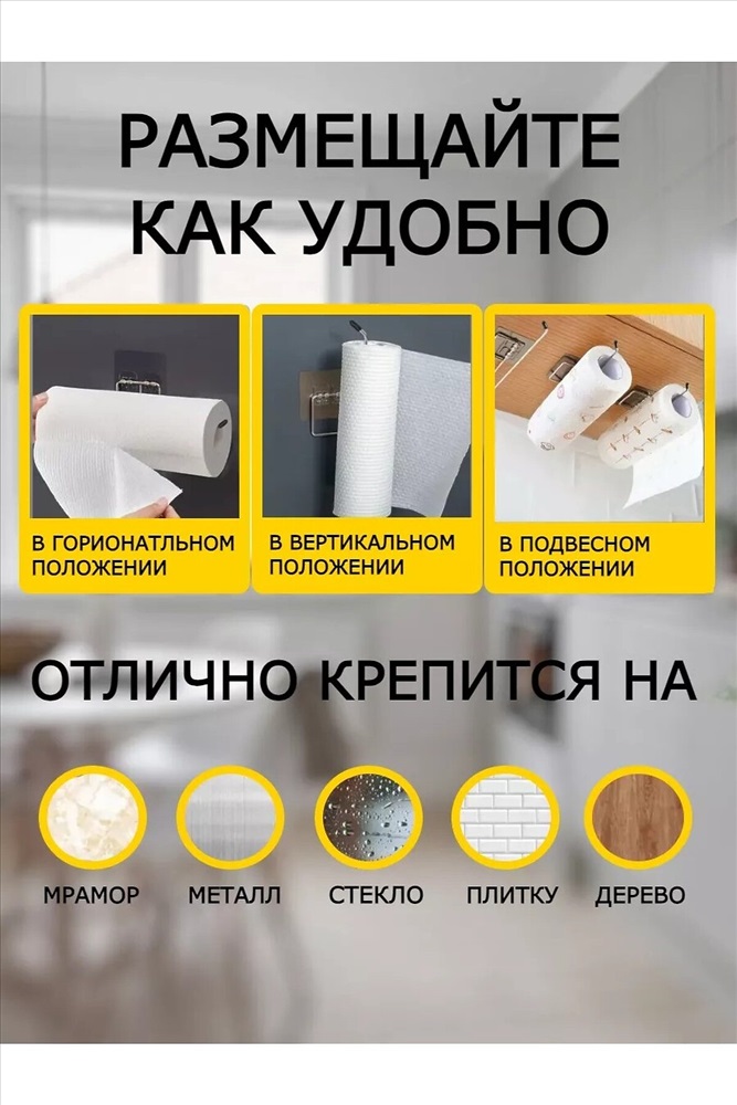 ID товара: 1213755 Сезон: Демисезон С помощью подвесного держателя вы можете разместить бумажные полотенца в удобное место под полочками или на дверцу шкафа. С ним Вы без проблем всегда можете быстро воспользоваться полотенцами: протереть поверхности стола, обсушить руки, фрукты, овощи или мясо. Вы сэкономите много времени, ведь больше не придется подолгу искать полотенца, фольгу, пленку или пергамент. Универсальный кухонный держатель вешалка выполнен из хромированной стали и предназначен для удерживания как кухонных бумажных или тканевых полотенец, так и прочих принадлежностей обихода. Крючок оснащен креплением на клейкой прозрачной ленте, чем завоевал любовь домохозяек, поскольку его монтаж и с эстетической стороны и в плане сохранения целостности не испортит поверхность на которую будет крепиться, чтобы установить его не потребуется даже помощь сильного пола, представительницы прекрасного пола справятся и сами, нужно только дополнительно очистить участок поверхности к которому будет прикреплен изящный девайс, обезжирить его, снять защитную пленку и прижать клеевую основу, тщательно пригладив, удаляя пузырьки воздуха. Комментарии к товару
