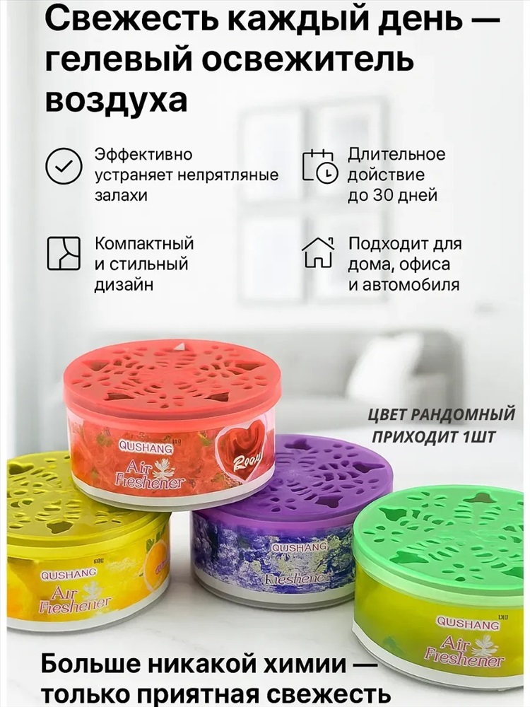 Модель: 61058 Ароматизатор гелевый Тип товара: освежитель воздуха Бренд: Без бренда Скидка: любая | от 10% и больше Инновационный гелевый освежитель воздуха обеспечивает постоянное и равномерное ароматизирование помещений без необходимости распыления. Компактный диск весом 63 г разработан для эффективной нейтрализации неприятных запахов и создания приятной атмосферы в небольших закрытых пространствах. Гель постепенно испаряется при контакте с воздухом, высвобождая ароматические молекулы и нейтрализуя неприятные запахи. Интенсивность аромата можно регулировать достаточно закрыть крышку. Области применения: Туалет и ванная комната Гардеробные и шкафы для одежды Салоны автомобилей Кухонные шкафы и холодильники Кладовые и подсобные помещения Почему выбирают наш освежитель: Не требует электричества или батареек Не оставляет пятен на поверхностях Можно использовать как в вертикальном, так и в горизонтальном положении Герметичная упаковка сохраняет свойства до вскрытия Не вызывает головной боли как сильные аэрозоли Забудьте о неприятных запахах! Закажите гелевый освежитель воздуха и наслаждайтесь свежестью до 45 дней. Таблица размеров и веса