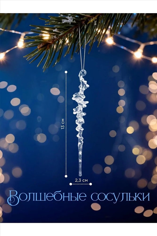 Сезон: Осень/Зима Комплект миниатюрных новогодних Сосулек из высококачественного кристально прозрачного акрила. Идеально дополнит праздничный зимний интерьер вашего дома и подарят новогоднюю оригинальную атмосферу, волшебство, уют и лучшее настроение. Встречайте Новый Год, Рождество с элегантно украшенной елью или сосной, наряженной невероятными ретро игрушками из СССР, имитирующими лед и стекло. С нашими изящными, винтажными, сверкающими, хрустальными сосульками можно также создать оригинальный эффектный декор праздничного стола и камина. Это базовое украшение, они великолепно сочетаются с классическими стеклянными шарами, гирляндами, светодиодными лампочками, отражая и усиливая их волшебное сияние. В наборе представлены 5 прозрачных маленьких сосулек безупречного качества, оптимального размера, что позволяет создать уникальные и запоминающиеся акценты вашей нарядной стильной ёлки. В комплект также входят серебристые нити, длина которых идеально подобрана и позволяет подвесить их ближе к ветви для более эффектного образа ели. Высококачественный экологичный гипоаллергенный акрил - обеспечивает их долговечность и безопасность для детей, так как они не бьются даже при падении с высоких веток, не имеют запаха. Те самые, из детства - отличный подарок для всех, кто ценит семейные традиции.