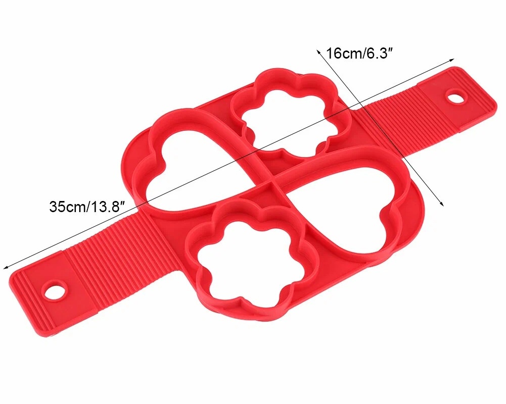 Модель: 61228 Фигурная форма силиконовая Тип товара: форма для выпечки Бренд: Без бренда Силиконовая антипригарная форма для омлета и блинов. Особенности: - Безопасный материал: Изготовлена из пищевого силикона, безвредного, антипригарного, без запаха и многоразового использования. - Удобный дизайн: Две удлиненные ручки облегчают извлечение готовых изделий, предотвращая ожоги. - Антипригарная поверхность. - Многофункциональность: Идеальна для приготовления кексов из яиц, жареных или варёных яиц, блинов, омлетов и бургеров. Лучшие результаты достигаются, когда кольца для яиц лежат плоско на поверхности приготовления. Таблица размеров и веса