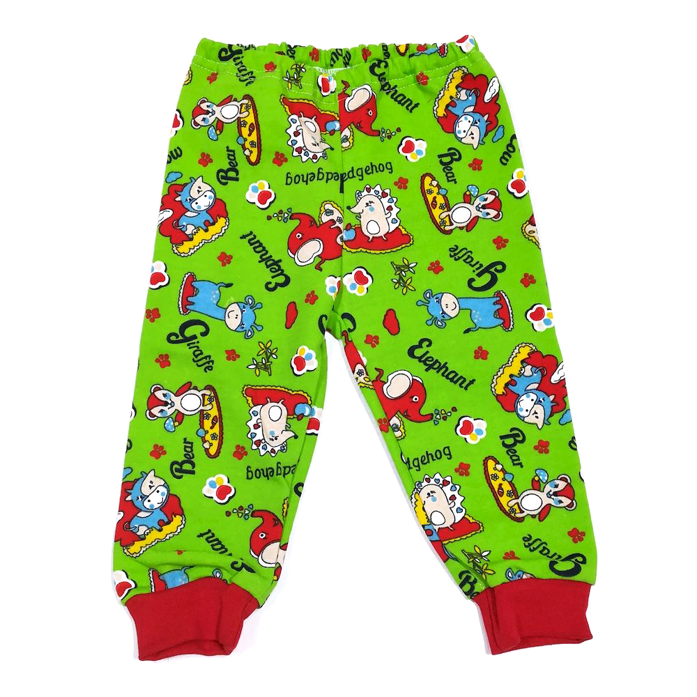 Брючки пижамные, утепленные, из х/б футера с начесом и красочными рисунками. В поясе на закрытой резинке, снизу на трикотажных манжетах.