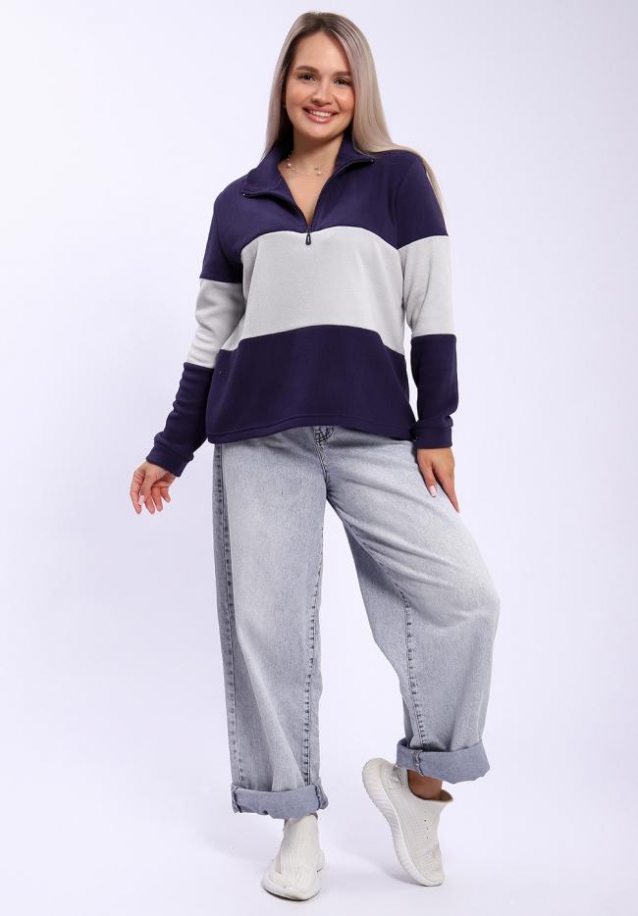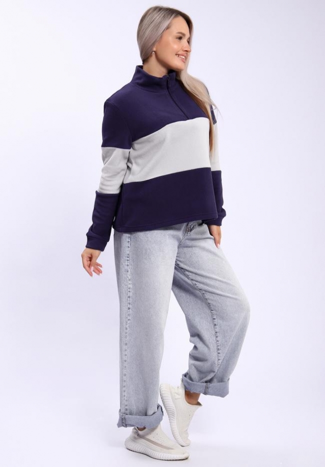 Утепленная толстовка с воротником-стойкой и молнией. Изготовлена из мягкого флиса, обеспечивающего тепло и комфорт. На груди расположена цветная вставка в стиле колор-блок, придающая изделию яркий и современный вид. Идеальный выбор для холодных дней, сочетающий уют и стиль.