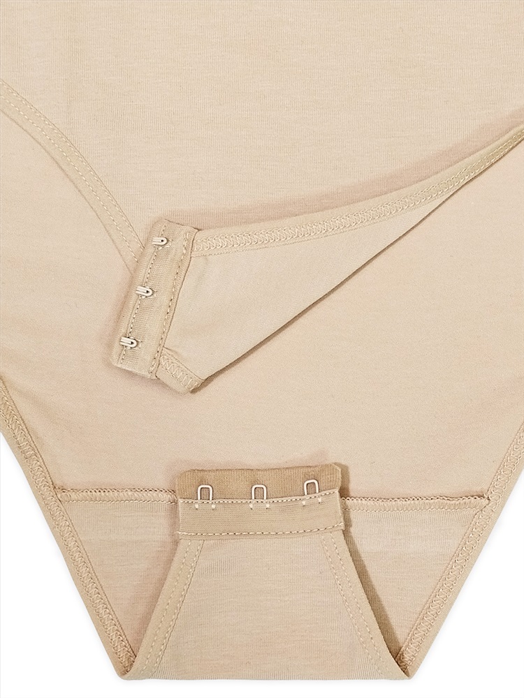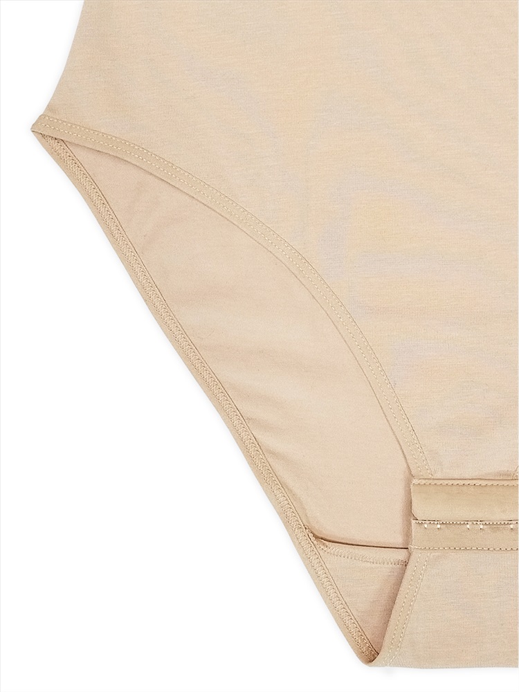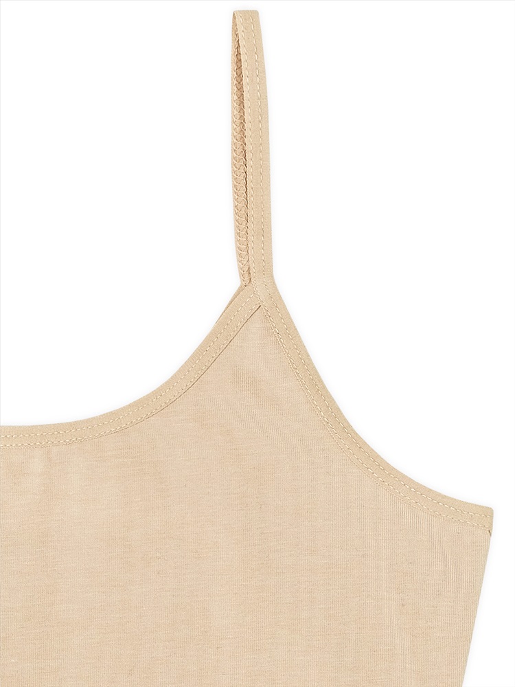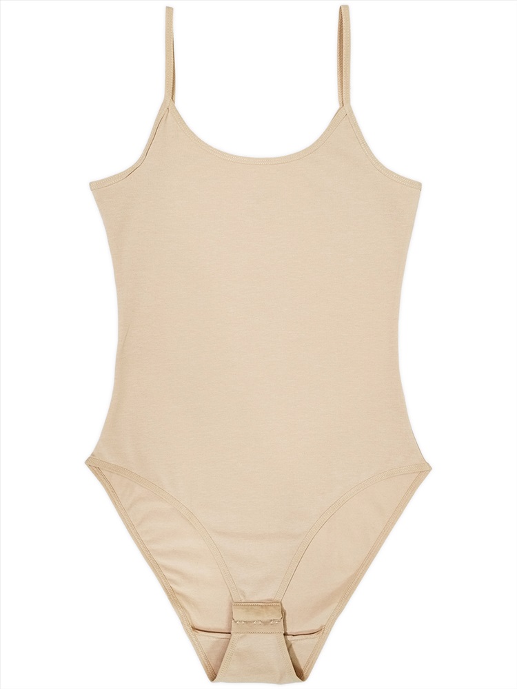 Облегающее боди на тонких бретелях выполнено из эластичного и дышащего трикотажного полотна (кулирка). Модель без чашечек. Бретели, отделка выреза и пройм из эластичного канта в цвет изделия. Глубокие проймы. Вырез трусиков слип. Хлопковая ластовица. Застёгивается на три пары крючково-петельных застёжек, бельевого типа. Бретели не регулируются.