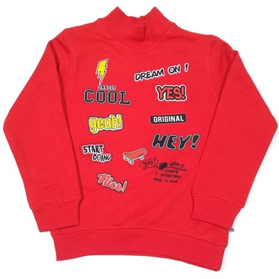 Джемпер утепленный на манжете. Горловина на широком манжете. Рукав на манжете. На полочке яркие надписи.
