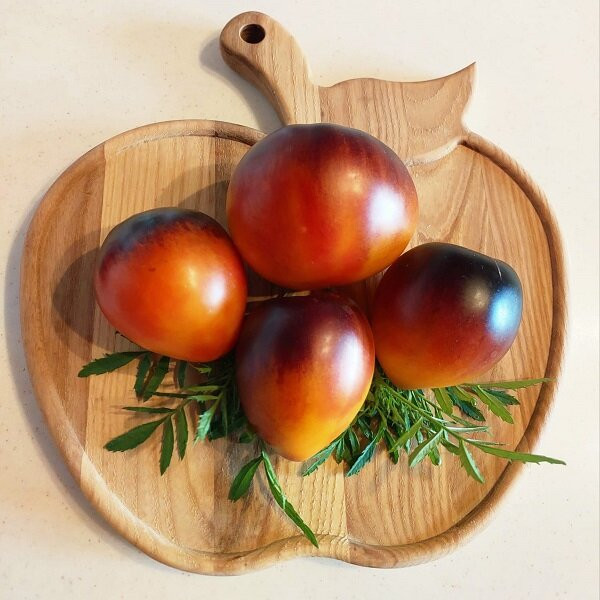 Высотой 1.8 м, среднеспелый, аккуратный куст, лист редкий, поникающий. Плоды сердцевидной формы с маленьким носиком, би-колоры с антоцианом, массой 100-300 гр. Мякоть плотная, мясистая, сладкого конфетного вкуса. Устойчив к заболеваниям, растянутое плодоношение.