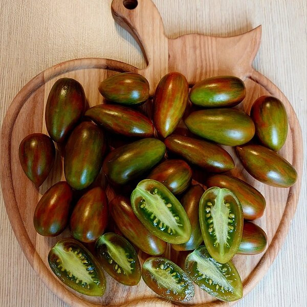 Среднеспелый, высокорослый сорт. Высота куста до 2 м. Плоды с бронзово-зеленой окраской. Вес плодов 20-30 гр. Плотная, сочная, очень сладкая мякоть с очень хорошим вкусом. Очень выносливое растение с исключительно высокой урожайностью и длительным плодоношением. Завязывает кисти без пропусков, устойчив к заболеваниям.