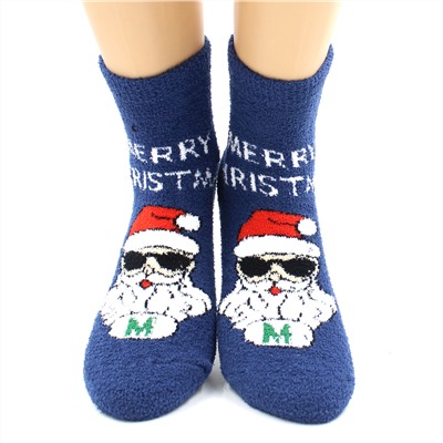 Носки утепленные (махра-пенка) с новогодним принтом "Дед мороз в очках". Средней длины паголенок.