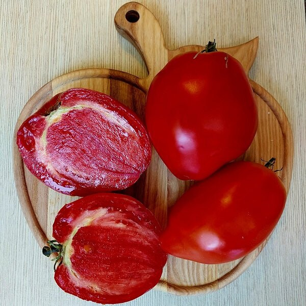 Лидер по балансу вкуса и урожайности среди красных сортов томатов. Высокорослый куст тонкого строения, который выдерживает на себе очень сладкие плоды весом +/- 0,5кг. Цвет - томатная классика, форма - неправильные сердца или пухлая сердцевидная.