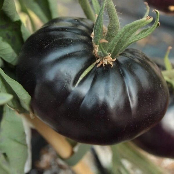 Куст индетерминантный, требует прищипки на нужной высоте, хорошо вяжет некрупные мясистые плоды, переполненные до черноты антоцианом. Плоды на срезе насыщенного карминного цвета, по краям 6-8 открытых камер и плотная серединка, отсюда и сочность и богатый пикантный вкус - лакомство для гурманов. Плоды способны долго храниться.