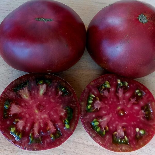 Среднерослый сорт. Высота растения составляет от 1 до 1,5 м. Относится к детерминантным сортам, то есть имеет ограниченный рост. Созревает в средние сроки и требует подвязки к опоре и формирования. Он подходит для выращивания как в теплицах, так и в открытом грунте. Рекомендуется формировать куст в 2-3 стебля. Плоды томата имеют пурпурную окраску и могут быть как широко плоскоокруглыми, так и сердцевидными. Средний вес одного плода составляет от 200 до 300 гр. Мякоть томатов очень мягкая и мясистая.