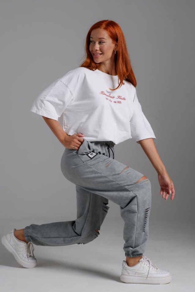 Стильные женские спортивные штаны с прорезями в уличном стиле. Штаны на резинке с комфортной посадкой созданы для ярких девушек, ценящих удобство и моду. Идеально подходят для прогулок, дома и активного отдыха. Легкие трикотажные джоггеры с карманами тренд сезона. Рваные детали добавляют дерзости образу, а свободный крой гарантирует комфорт на каждый день. Багги, карго, бананы и слоучи все, что нужно для модного гардероба! Оверсайз штаны на резинке с манжетами идеально подойдут как для подростков, так и для женщин высокого и невысокого роста. Создай модный лук с хлопковыми кэжуал брюками. Необычные широкие дырявые джоггры с высокой талией подчеркнут твою индивидуальность. Выбери casual штаны с гранж акцентами для танцев или фитнеса будь всегда на пике тренда. Стильная спортивка с прорезями для девушек отличный выбор для демисезона и весенних прогулок. Почувствуй свободу движения!