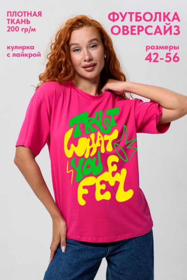 Женская футболка оверсайз это идеальный выбор для девушек, которые любят сочетать комфорт и стиль. Стильная и качественная, она доступна в любом размере, включая большой до 56. Свободный крой подойдет в том числе и для беременных женщин. Высокие стандарты качества делают её универсальным элементом гардероба, подходящим для создания модных повседневных образов. Она идеальна для взрослых и подростков, предпочитающих спортивную и яркая одежду. Высокая плотность ткани 200гр/куб.м.
