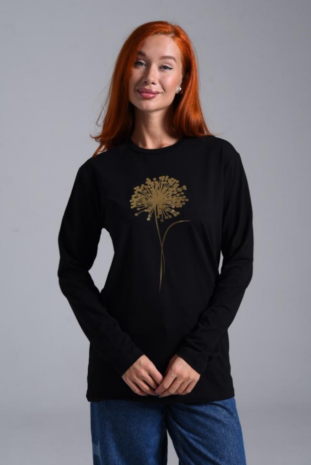 Лонгслив снова в моде и прочно обосновался в базовом гардеробе современного человека. Удобная трикотажная кофта представляет собой футболку с длинным рукавом, которую можно использовать как самостоятельный элемент, так и носить под пиджак, толстовку или рубашку. Лонгслив выполнен из высокоплотного хлопкового трикотажа и является невероятно комфортным и удобным. Футболка с длинными рукавами имеет прямой базовый крой и классическую линию плеча. Лонгслив - это неформальный стиль, когда на футболку можно надеть клетчатую рубашку и сочетать с кедами и джинсами. За счет натуральной ткани лонгслив можно носить в качестве домашней одежды или нательного белья, одежды для сна, тренировочной спортивной одежды и военной экипировки. Если вы хотите силуэт оверсайз нужно взять на размер или два больше, ориентируйтесь по таблице замеров. Принт фольга - очень яркий и блестящий.