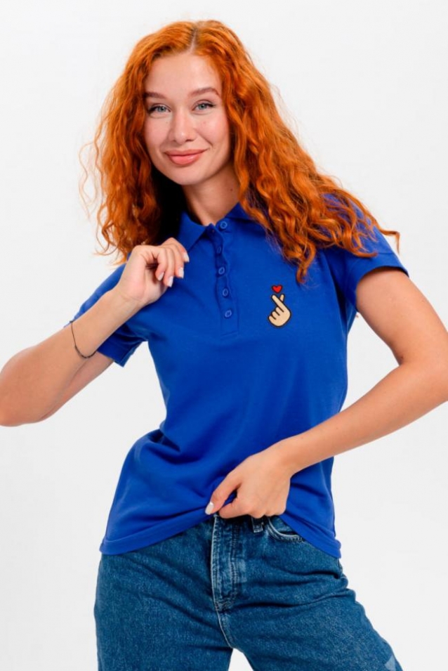 8524 футболка поло женская (Индиго_рука с сердцем)