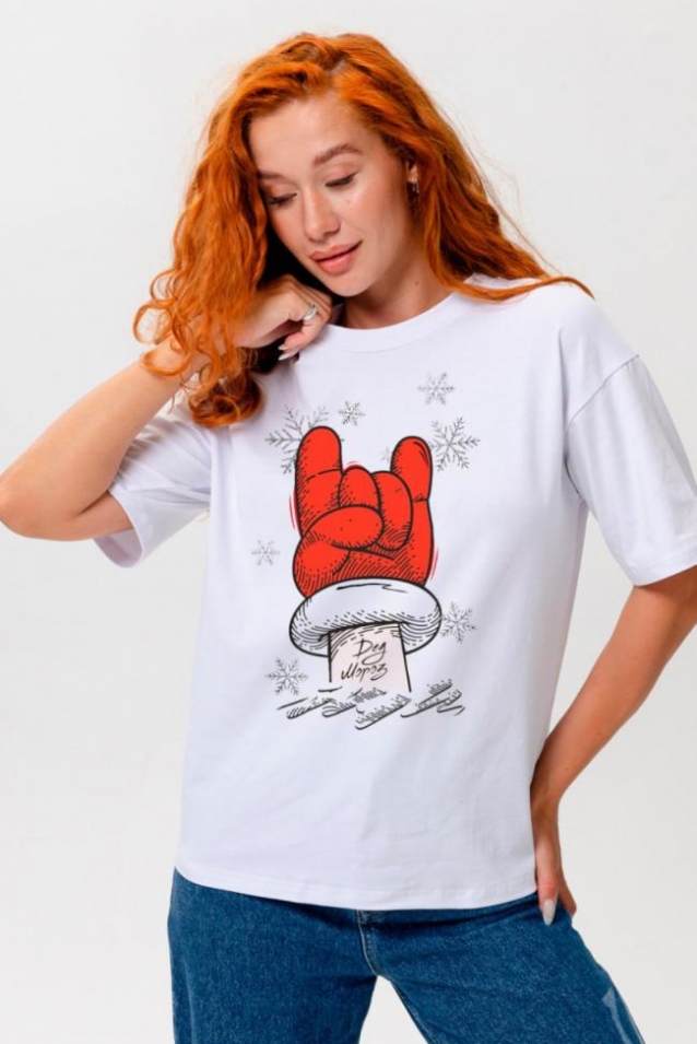 8531 Футболка женская оверсайз (Белый_рука)