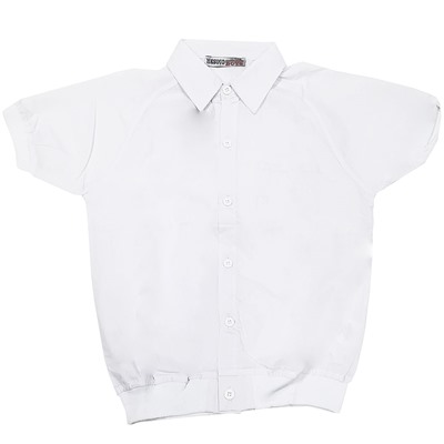 Рубашка с коротким рукавом для мальчика с застежкой на пуговицах, воротник отложной на стойке. По переднему полотнищу есть небольшой накладной карман, Рукава реглан. Низ рубашки и низ рукава обработаны