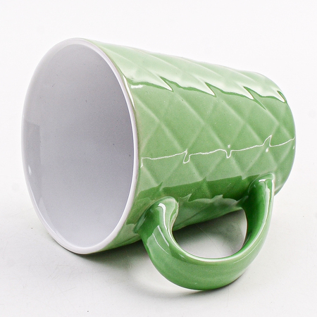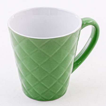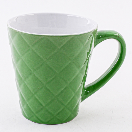 Остаток: 94 Материал: керамика. Цвет: зеленый. Диаметр корпуса: 9 см. Диаметр дна: 6 см. Высота: 10 см. Длина с ручкой: 12,5 см. Размер упаковки: 15,5 х 11 х 10,5 см. Упаковка: коробка. Вес без упаковки: 0,288 кг. Вес с упаковкой: 0,323 кг. Страна производитель: Китай. Кружка LORAINE – это изысканный подарок, сочетающий в себе функциональность и неповторимый стиль. Выполненная из высококачественной керамики, она отличается прочностью и долговечностью, радуя вас своим безупречным внешним видом на протяжении долгого времени. Оригинальный дизайн кружки, украшенный рельефным ромбовидным узором, придает ей особый шарм и элегантность. Насыщенный цвет подчеркивает изысканность формы и делает кружку ярким акцентом на вашей кухне или рабочем столе. Керамическая посуда, проверенная временем, не теряет своей актуальности и популярности. Кружка LORAINE приятно держать в руках благодаря удобной ручке, которая обеспечивает надежный захват и комфортное использование. Наслаждайтесь любимым напитком – будь то ароматный кофе по утрам, бодрящий чай в течение дня или согревающий какао вечером – в посуде, которая дарит вам положительные эмоции. Практичность и удобство в использовании делают чашку LORAINE незаменимой в повседневной жизни. Она подходит для использования в микроволновой печи, что позволяет быстро разогреть напиток, а также легко моется в посудомоечной машине, экономя ваше время и силы. Чашка LORAINE – это не просто предмет посуды, это стильный аксессуар, который подчеркнет ваш вкус и индивидуальность. Она станет прекрасным подарком для ваших родных и близких, друзей и коллег, которые ценят красоту и практичность в каждой детали. Подарите им частичку тепла и уюта с кружкой LORAINE!
