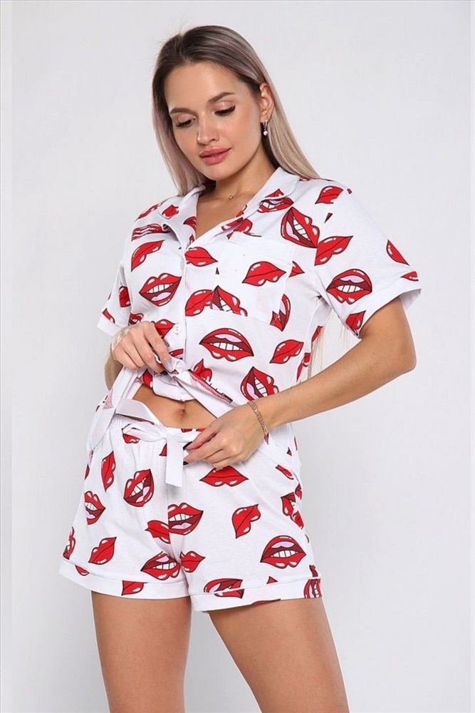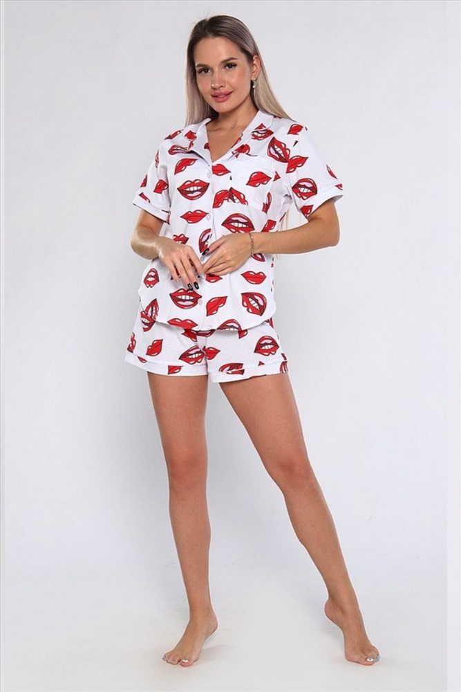 Состав: хлопок 100% Модель: 908 Пижама женская Губы Тип товара: пижама с шортами Материал: кулирка | кулирка Бренд: Руся Карман: без карманов Назначение: для дома Особенности: на резинке Отделка: с тесьмой Посадка: средняя посадка Рисунок: разное Рукав: короткий рукав Сезонность: лето | осень | весна | зима Силуэт: прямой | свободный Стиль: домашний Воротник: отложной воротник | воротник с лацканами Застежка: пуговицы Женская пижама с шортами из хлопка отличный выбор для комфортного сна и в то же время стильного отдыха. Модель включает в себя верх с коротким рукавом, который украшен пуговками и отложным воротником, что придает ей аккуратный и элегантный вид. Белоснежный цвет с оригинальным рисунком в виде губ добавляет игривости и женственности. Пижама из хлопка обеспечивает приятные тактильные ощущения и хорошую вентиляцию, что делает её идеальной для теплой погоды. Шортики свободного кроя обеспечивают свободу движений во время сна. Это отличный выбор как для домашнего использования, так и для летних поездок на отдых. Выбирайте лушее качество от Руся трикотаж. Таблица размеров и веса
