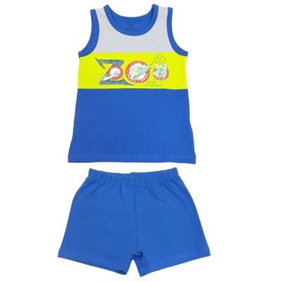 Комплект для мальчика из х/б трикотажа. Майка триколор с красочным принтом на груди "Зоопарк". Горловина и проймы отделаны трикотажным кантом.