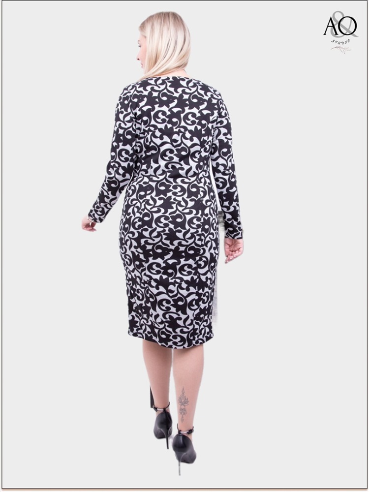 Классическое платье-футляр в черно-сером тоне.Платье полуприлегающего силуэта.По полочке и спинке рельефные швы.Вырез горловины округлый,рукав втачной длинный.Платье выполнено из очень мягкого и приятного на ощупь трикотажа.Платье-футляр подчеркнет ваши особенности и скроет недостатки.Прекрасный выбор на каждый день.Платье без карманов и застежки.Параметры модели на фото: 100/80/106 рост 178,размер на модели 48.