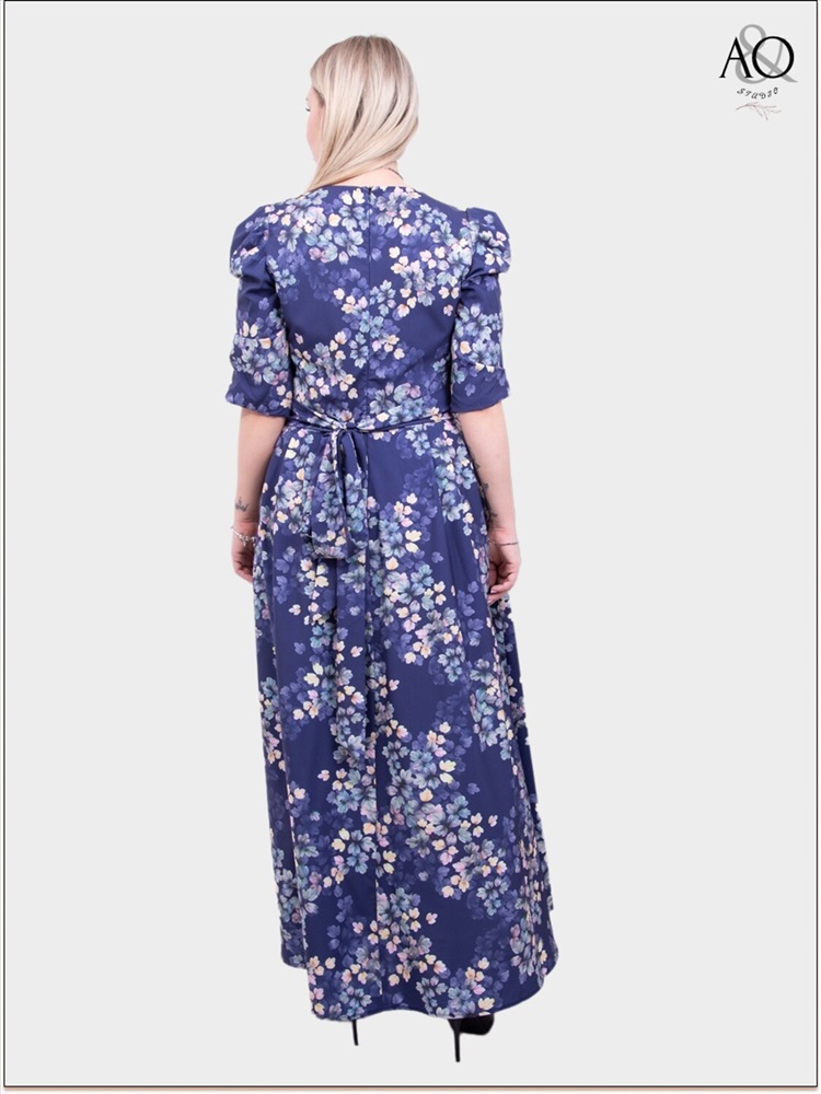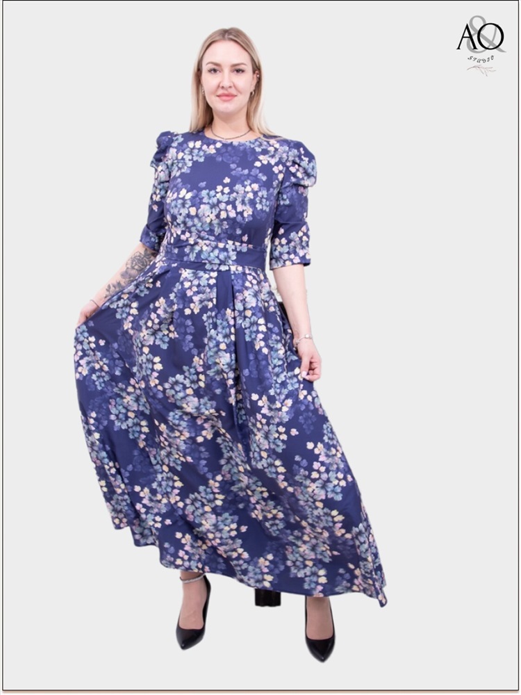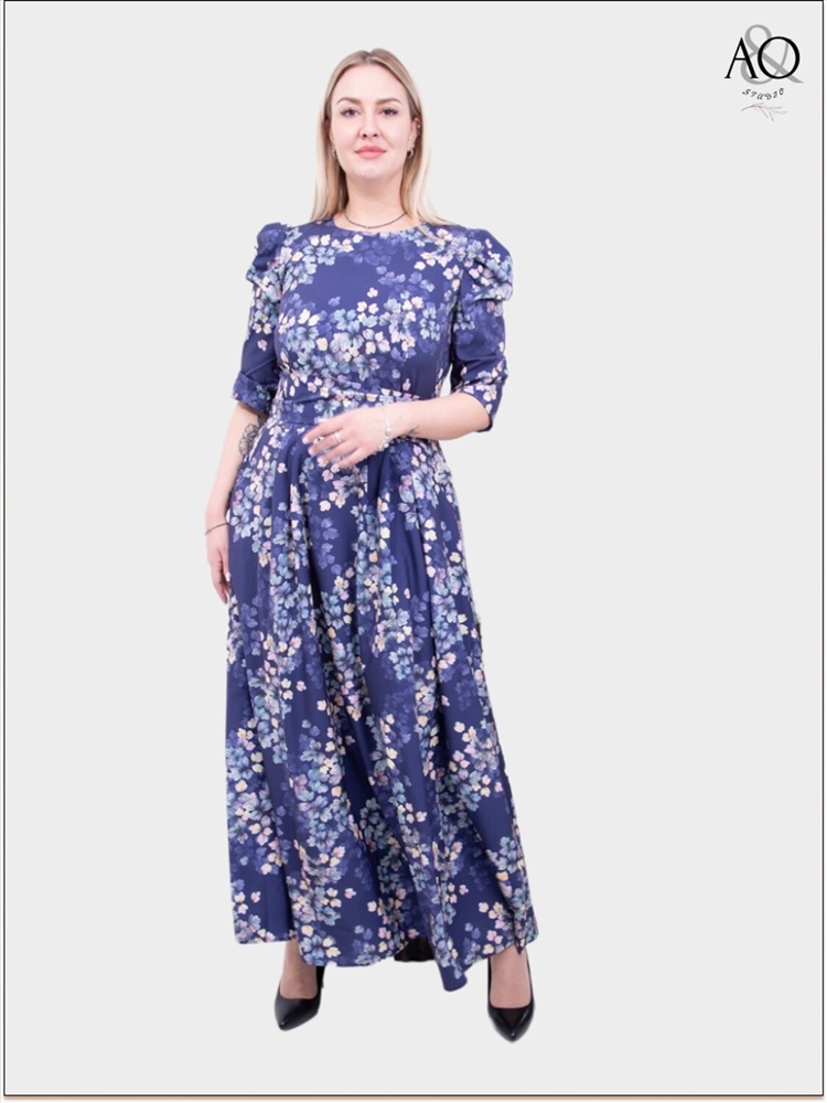 Платье длинное в пол без подкладки. Платье отрезное по линии талии, юбка с бантовыми складками, прорезными карманами и широким поясом. По спинке молния. Вырез горловины округлый, рукав на подкладке втачной со сборками длинной 3/4.Платье выполнено из легкой текстильной ткани Ниагара.Параметры модели на фото: 100/80/106 рост 178,размер на модели 48.