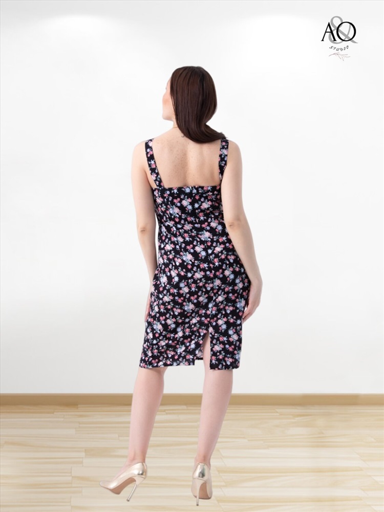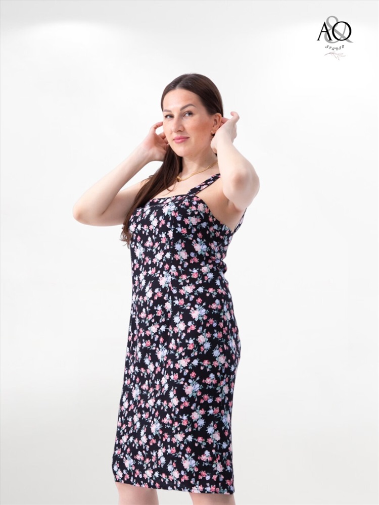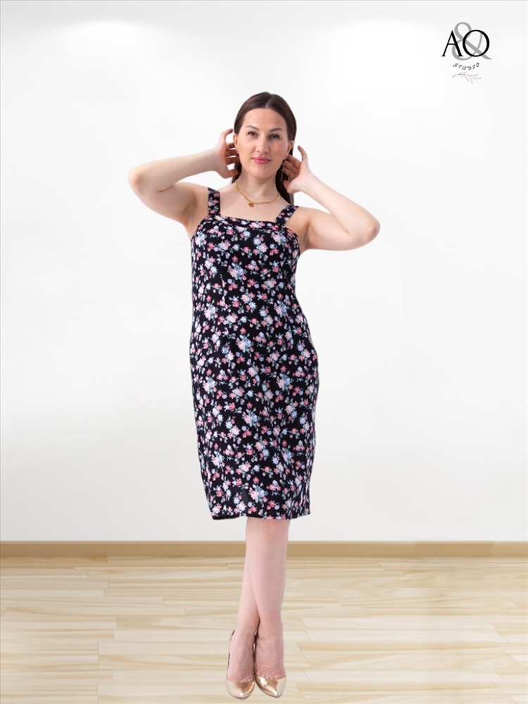 Сарафан прилегающего силуэта на широких бретельках.Вырез горловины "карэ". По спинке талиевые выточки.Застежка молния.В центральном шве разрез.Параметры модели на фото :94/75/98 рост 172 см.