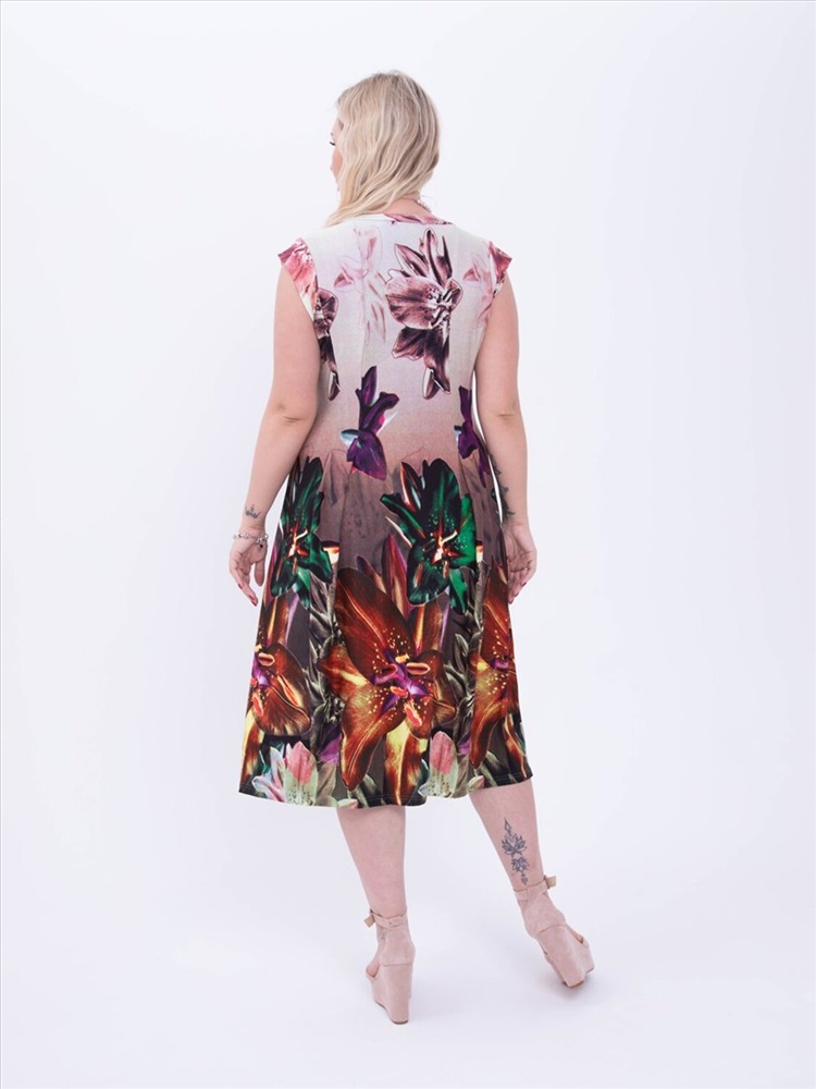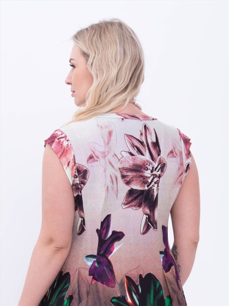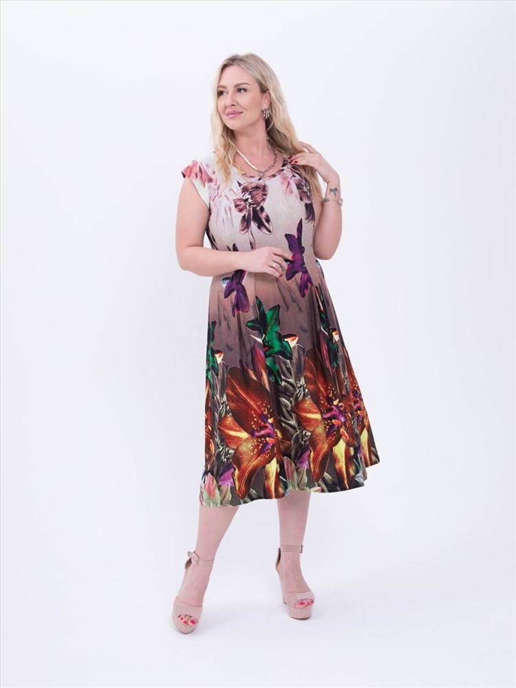 Платье из плотного трикотажа прилегающего силуэта.По полочке и спинке фигурные рельефы до линии бедра.Вырез горловины округлый,рукав небольшое крылышко.Яркое платье для отдыха и на работу в жаркую погоду.Модель на фото в 54 размере .Парметры модели: 107/93/119 рост 178 см.