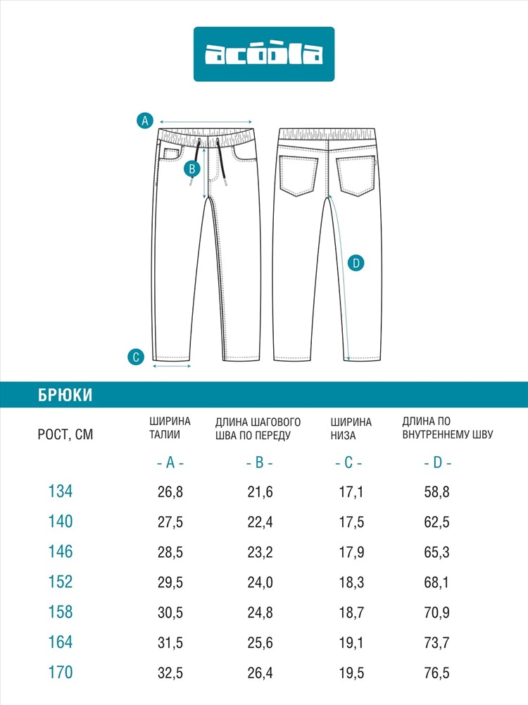 Производитель: Acoola; Российский размер: 134; Рост: 134; Обхват груди: 67; Обхват талии: 59,5; Обхват бедер: 72; Артикул поставщика: 20110440099; Состав: 98%Хлопок,2%ПУ; Сезон: Осень, Зима; Год: 2025
